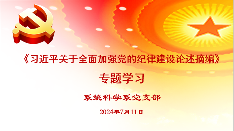 7月11日,系统科学系党支部开展了《习近平关于全面加强党的纪律建设论述摘编》专题学习。