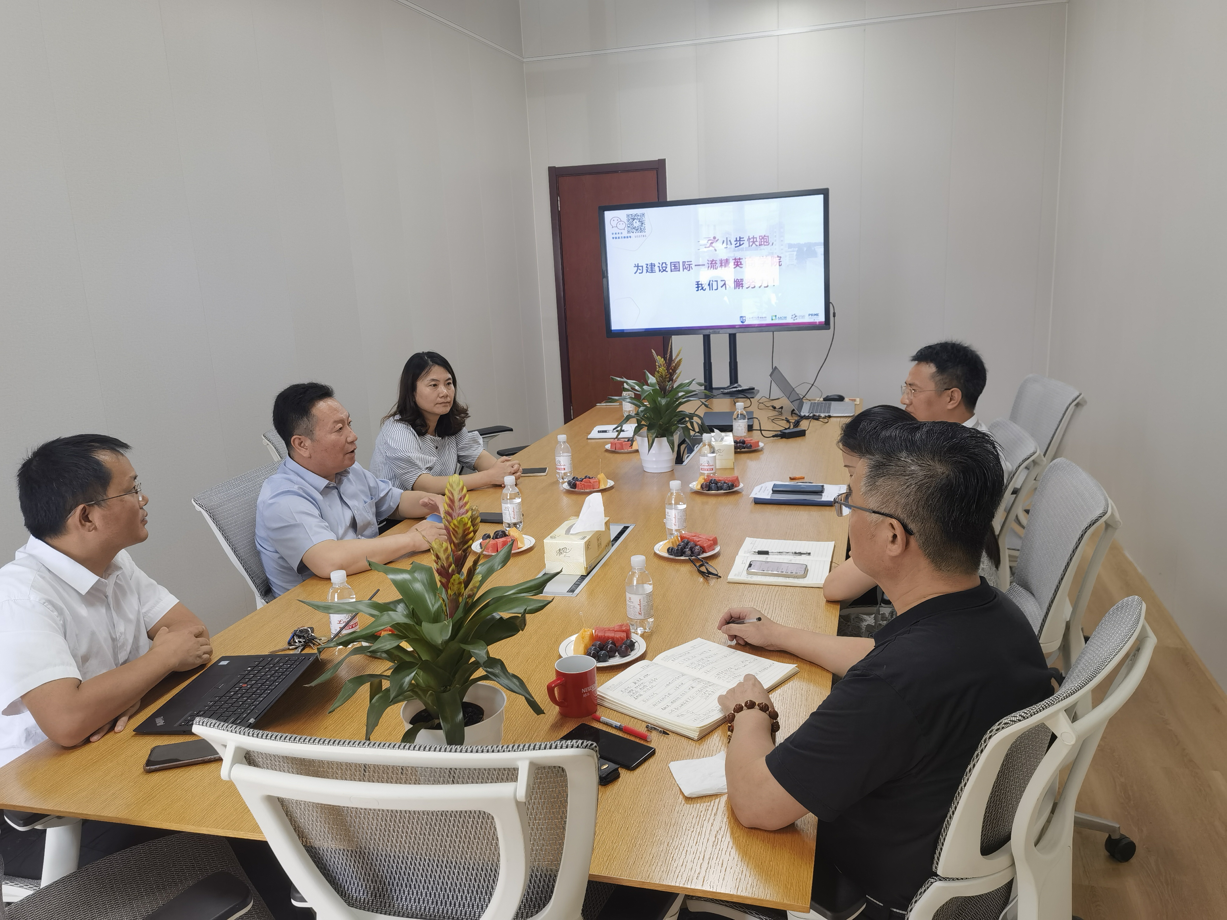 为加强学院与校友联动,深化院企合作,7月23日上午,管理学院党委书记马静波、副书记蒲莹莹,信息管理与信息系统系党支部书记朱小栋,学工办主任秦治国一行赴上海英内医云智能科技有限公司访问交流。公司战略部执行总监、管理学院97级校友付祖龙,综合部人事行政总监金秀,营销部销售总监汤烨接待到访一行,并举行座谈交流会。