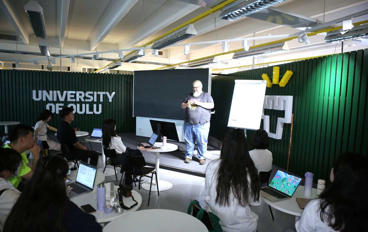 奥卢大学的“创业与商业模式创新”课程项目由经验丰富的Jason Brower教授主讲,他以自己跨行业的职业经历为例,生动描述了如何追寻自己的激情并实现职业生涯的多样性和灵活性。Jason强调,职业生涯的多样性和灵活性是成功的关键,而兴趣则是最佳起点和支撑。课程的核心在于通过多个实际案例,展示如何将日常生活中的问题转化为商业机会。在实践环节中,Jason设计了团队合作任务,引导学生们从不同角度思考问题并提出创新商业方案,如何在团队中高效合作,发挥各自优势。Jason鼓励同学们保持好奇心和探索精神,勇于挑战自我,实现从细微处着手的创新突破。