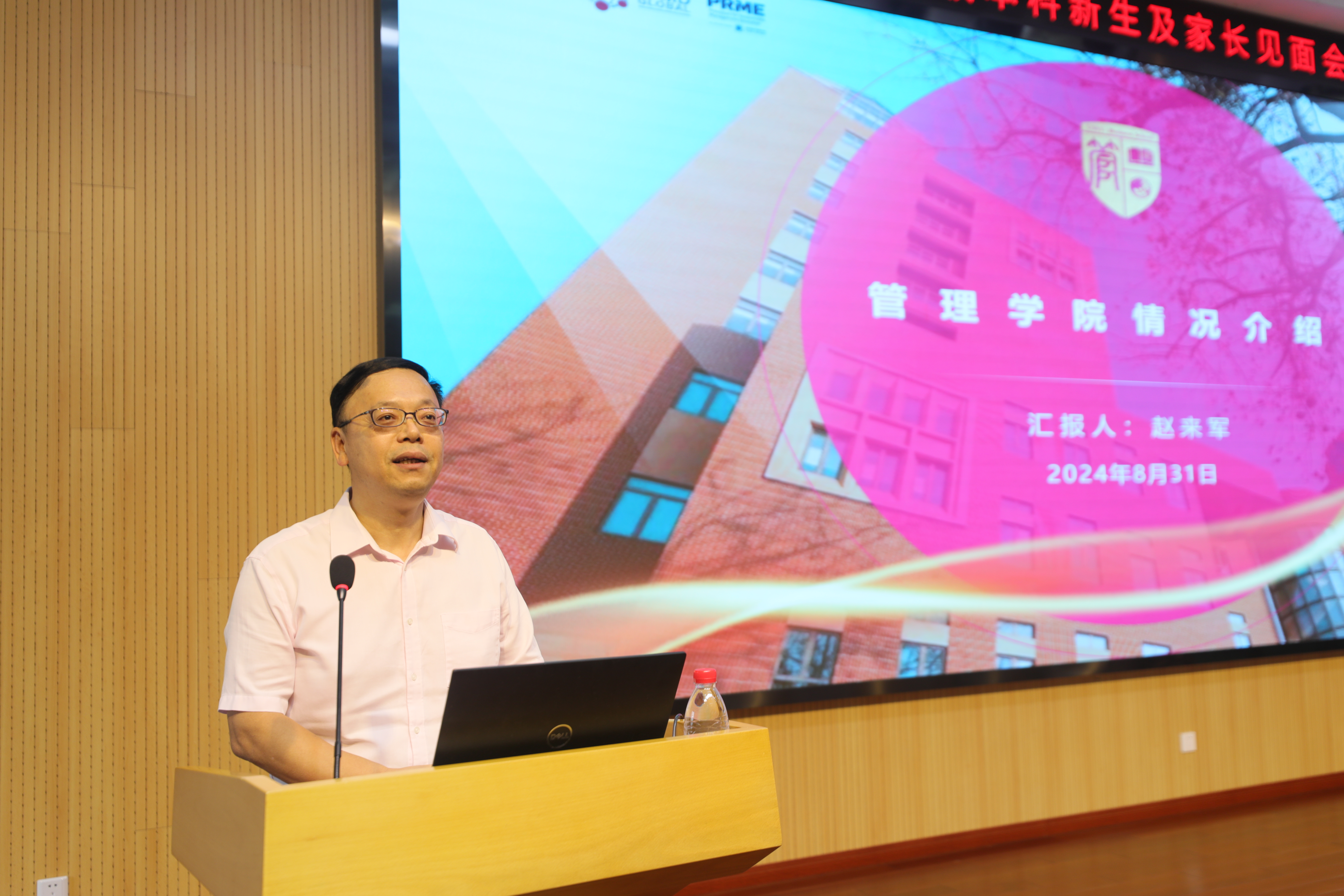 会上,赵来军作管理学院情况介绍,他从学院历史沿革、组织架构、师资情况、学科体系、国际化建设、科学研究、智库建设、本科人才培养等方面介绍了管理学院情况,表示管理学院一直致力于培养具有国际视野、创新精神和实践能力的高素质人才,希望新生们能够珍惜大学时光,勤奋学习,积极参加各类活动,勇于探索,不断追求卓越。
