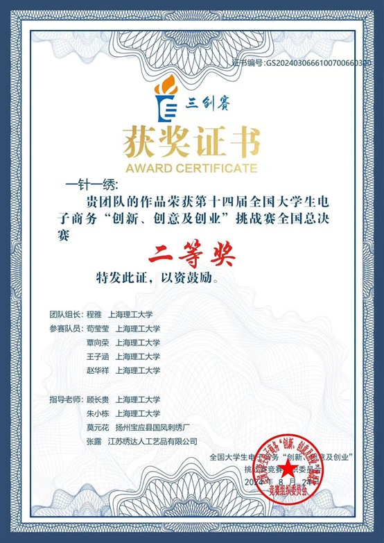 8月30日,全国大学生电子商务“创新、创意及创业”挑战赛竞组委正式公示了第14届全国大学生电子商务“创新、创意及创业”挑战赛(简称“三创赛”)常规赛全国总决赛的获奖名单。管理学院教师顾长贵、朱小栋指导的团队“一针一绣”和管理学院教师倪静、创新创业学院李臣学指导的团队“嗞嗞充电”荣获全国总决赛二等奖。