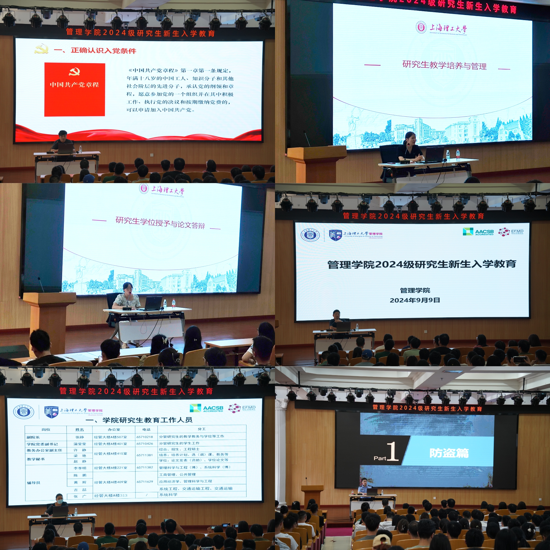 九月时节,金桂飘香,莘莘学子踏进上理校园,翻开人生崭新的一页。为了更好地服务于管理学院 2024 级研究生新生的学业发展,管理学院精心组织开展了一系列入学教育活动,内容包括“科研教育第一课”和2024级研究生新生入学教育等,旨在帮助新生迅速适应新环境、明晰学习目标、顺利融入校园生活,引导新生在科研学习道路上稳步前行,培养良好的品德素养和综合能力,为未来的成长与发展奠定坚实基础。