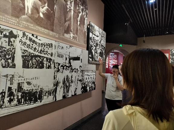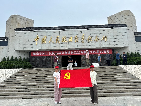 红色研学团队在中国抗日战争纪念馆合影留念、团队成员听讲解