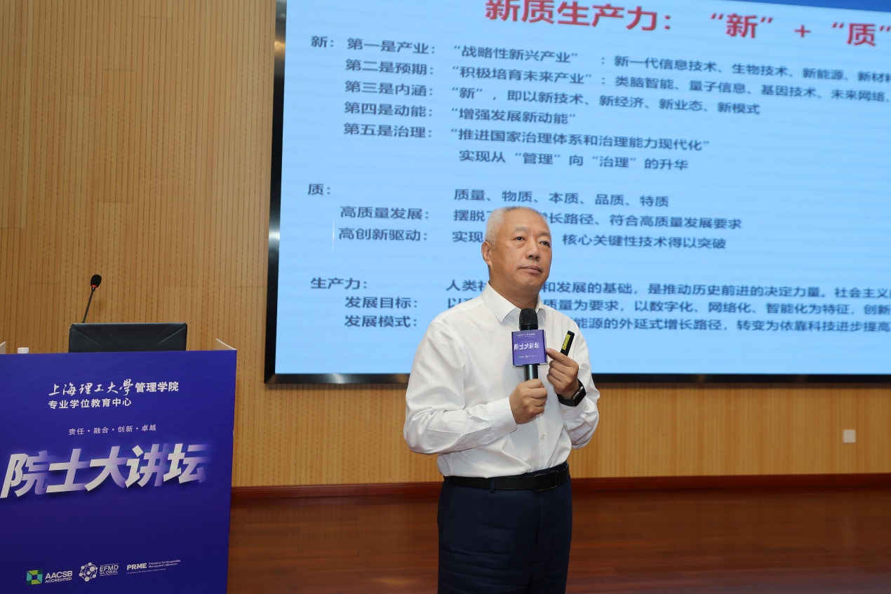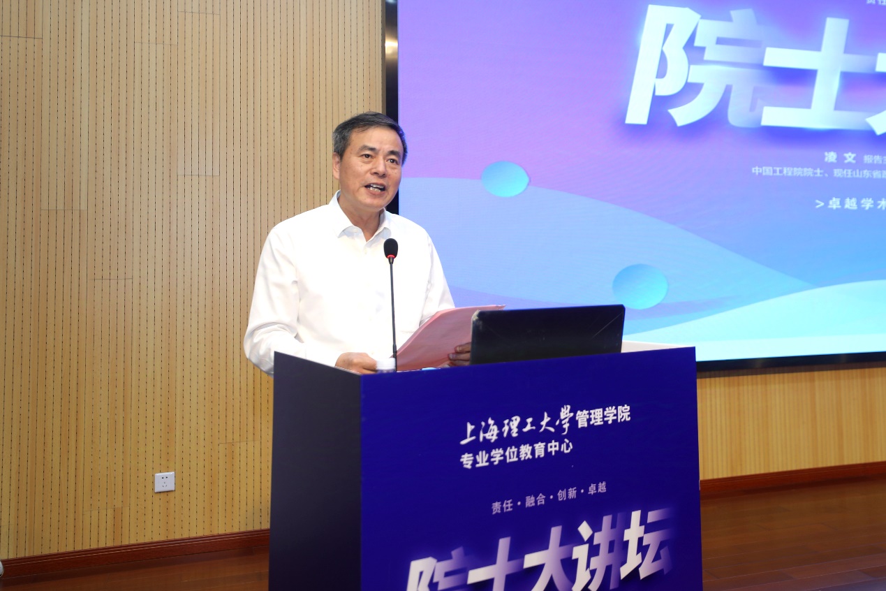 9月24日下午,中国工程院院士、山东省科学技术协会主席、上海交通大学讲席教授凌文应邀来校为师生作了题为“新质生产力与跨界创新的探索实践”的学术报告。校长朱新远,校党委副书记、副校长盛春,管理学院全体党政领导班子成员以及学院300余名师生参加报告会。报告会由盛春主持。