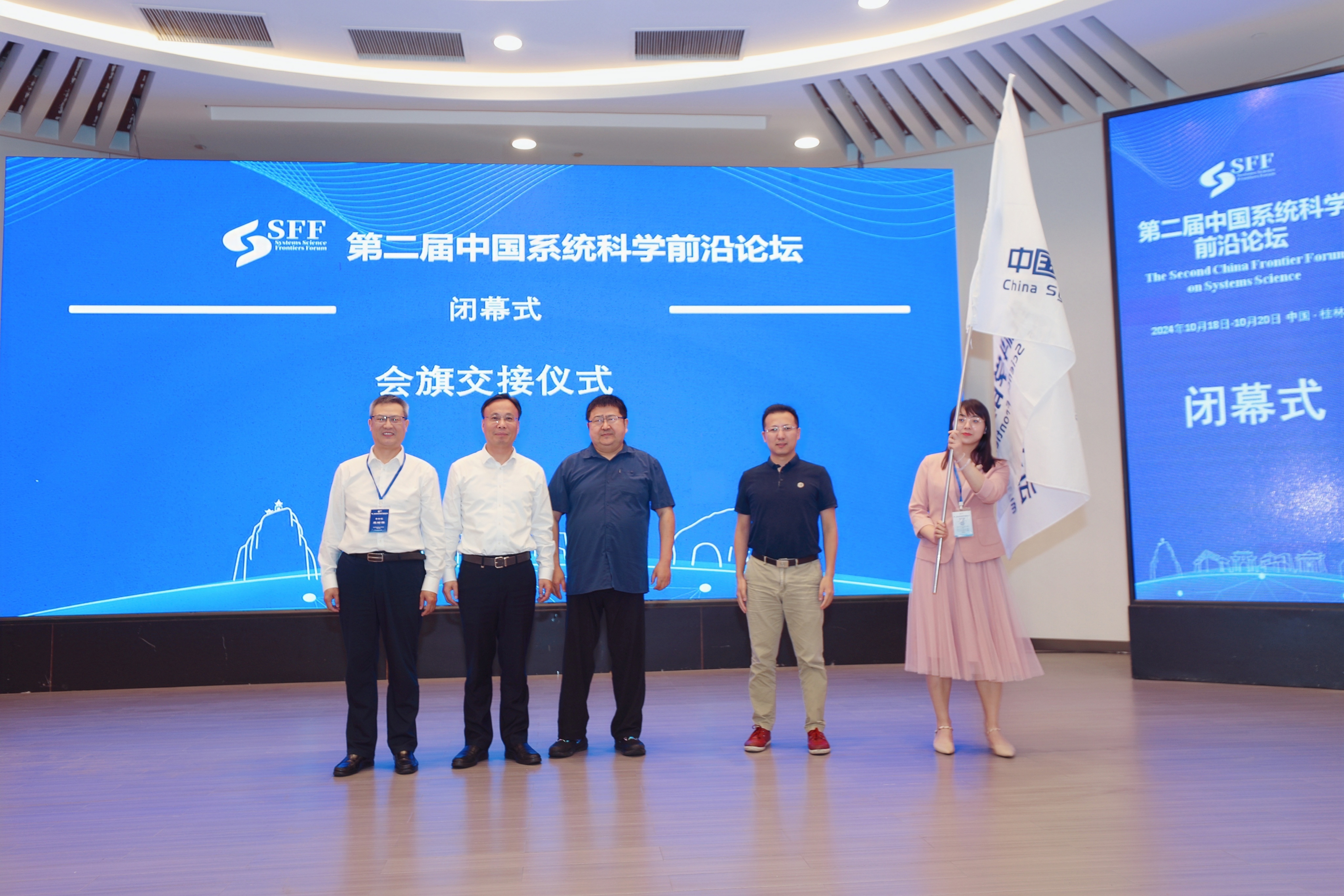 论坛闭幕式上,顾春华代表主办单位上海系统科学研究院,将会旗从第二届论坛承办单位代表广西师范大学收回,交予第三届论坛承办单位电子科技大学,并对本次大会顺利举办表示祝贺,同时邀请更多优秀的青年学者通过指导委员会推荐和自荐相结合的方式报名作第三届论坛青年学者专题报告。