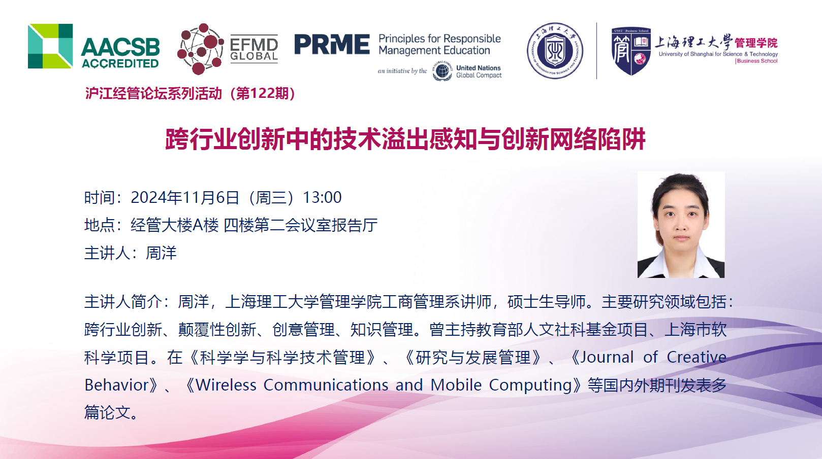 沪江经管论坛系列活动(第122期):跨行业创新中的技术溢出感知与创新网络陷阱