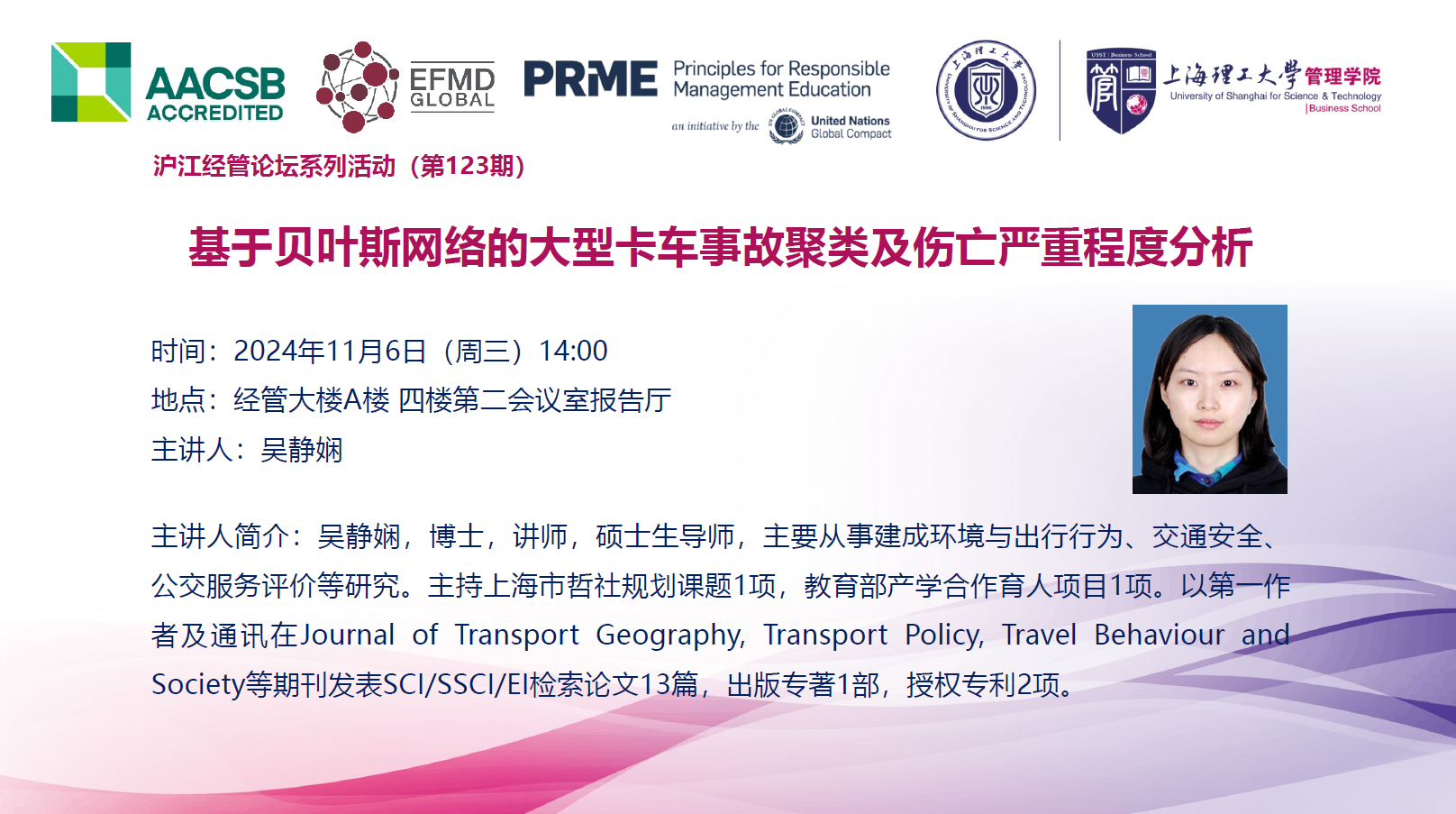 沪江经管论坛系列活动(第123期):基于贝叶斯网络的大型卡车事故聚类及伤亡严重程度分析