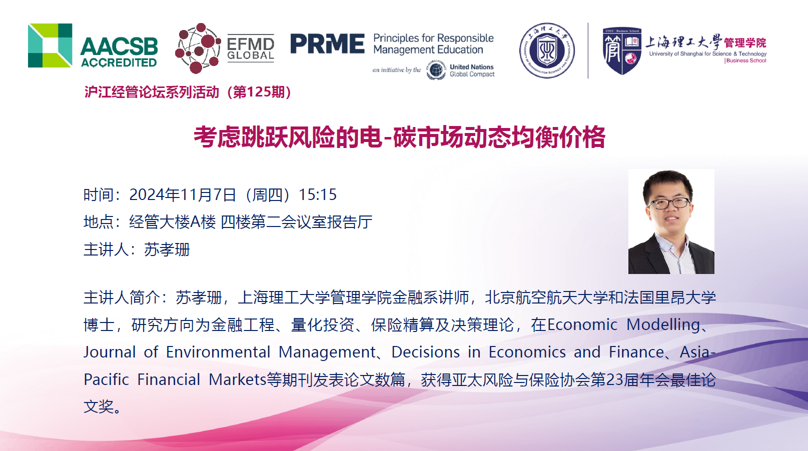 沪江经管论坛系列活动(第125期):考虑跳跃风险的电-碳市场动态均衡价格