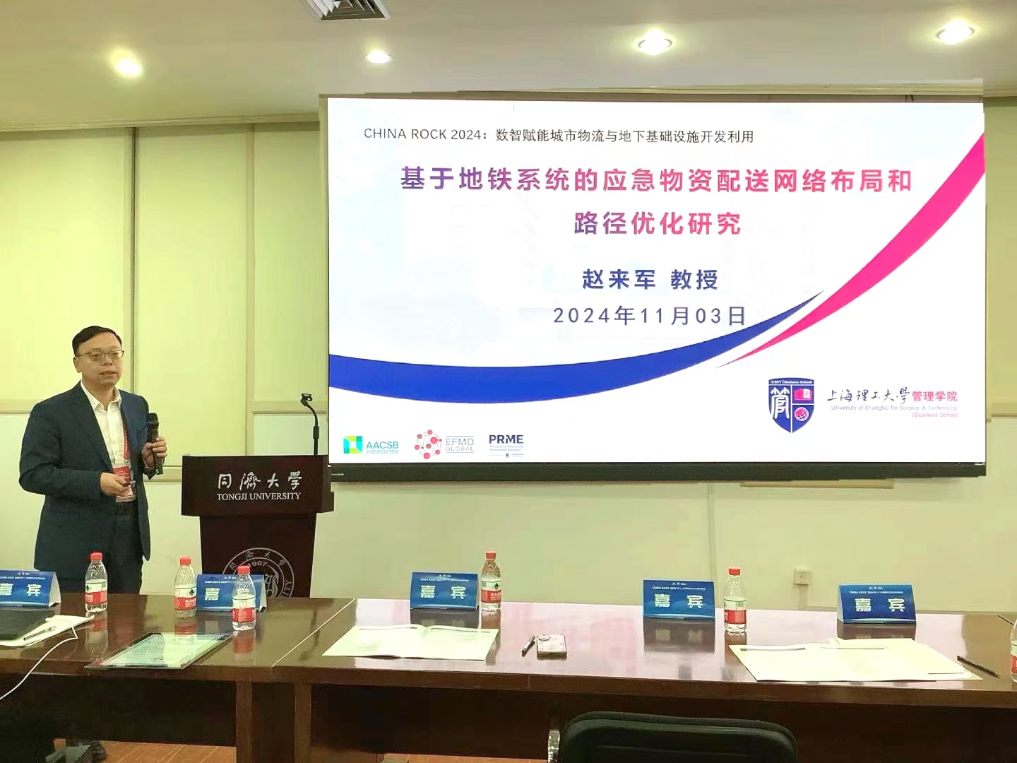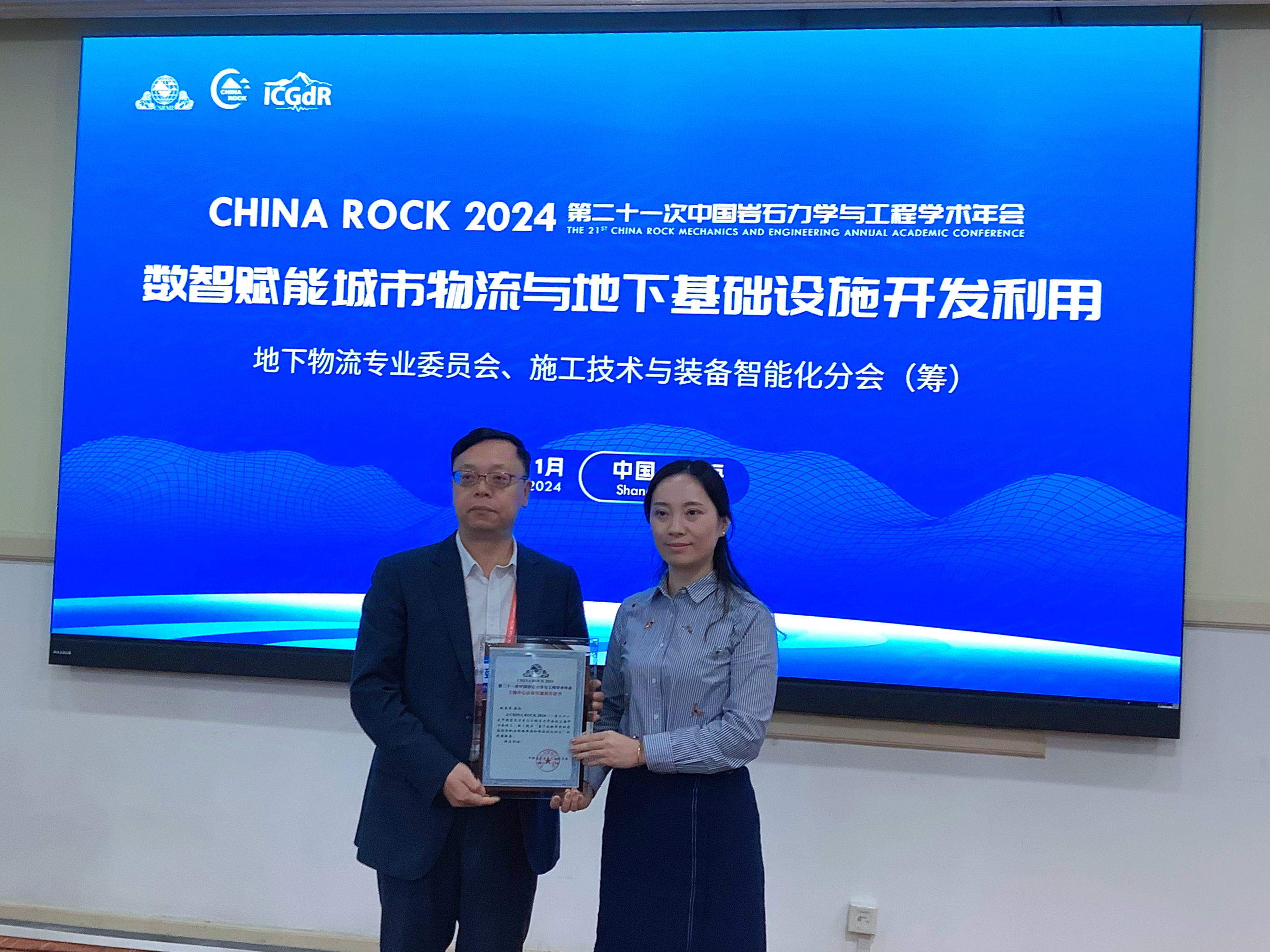 11月1日至4日,CHINA ROCK 2024第二十一次中国岩石力学与工程学术年会在四川成都召开。本次会议的主题为“重大工程与风险防控”,旨在加强我国岩石力学与工程领域的学术交流,促进国内外岩石力学与工程领域的科技创新。会议采用“主会场+中心会场+卫星会场”的模式,其中在上海设立了中心会场,我校作为卫星会场之一,积极参与并协办了此次会议。管理学院院长赵来军教授受邀出席CHINA ROCK 2024上海中心会场会议,并在“数智赋能城市物流与地下基础设施开发利用”学术分会场作主题报告。我校多名教师、博士后和研究生共同参与了此次学术年会。