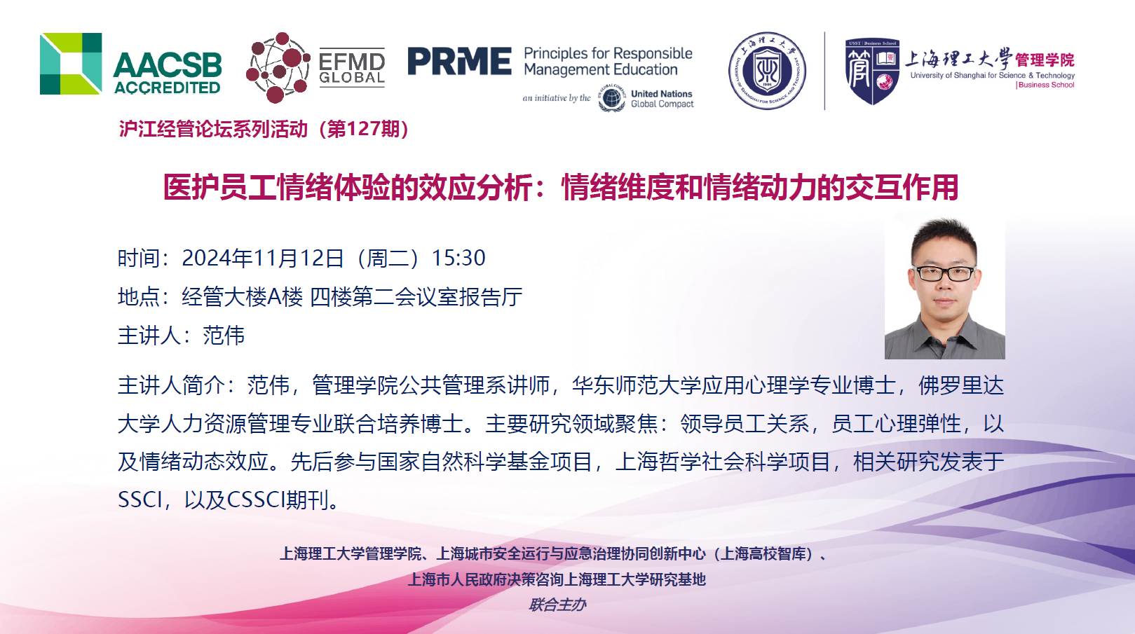 沪江经管论坛系列活动(第127期):医护员工情绪体验的效应分析:情绪维度和情绪动力的交互作用