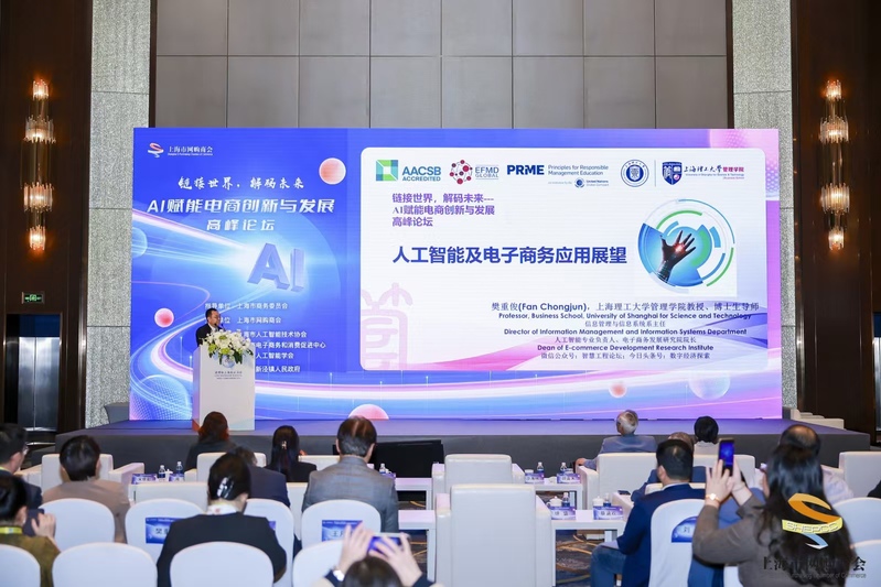 11月7日,下午,上海市网购商会携手旗下各大电商平台、技术服务商、实体商圈、品牌商家,联合各方力量在“进博会上海会议活动”主会场——虹桥绿地铂瑞酒店举办“链接世界,解码未来——AI赋能电商创新与发展”高峰论坛,通过深入的交流和探讨,从技术原理到实际应用,从市场趋势到发展战略,全方位剖析 AI 如何为电商注入新动力,推动行业迈向新的高度。电子商务研究院创始院长杨坚争,管理学院人工智能专业负责人、电子商务研究院院长樊重俊应邀参加“AI赋能电商创新与发展”高峰论坛。
