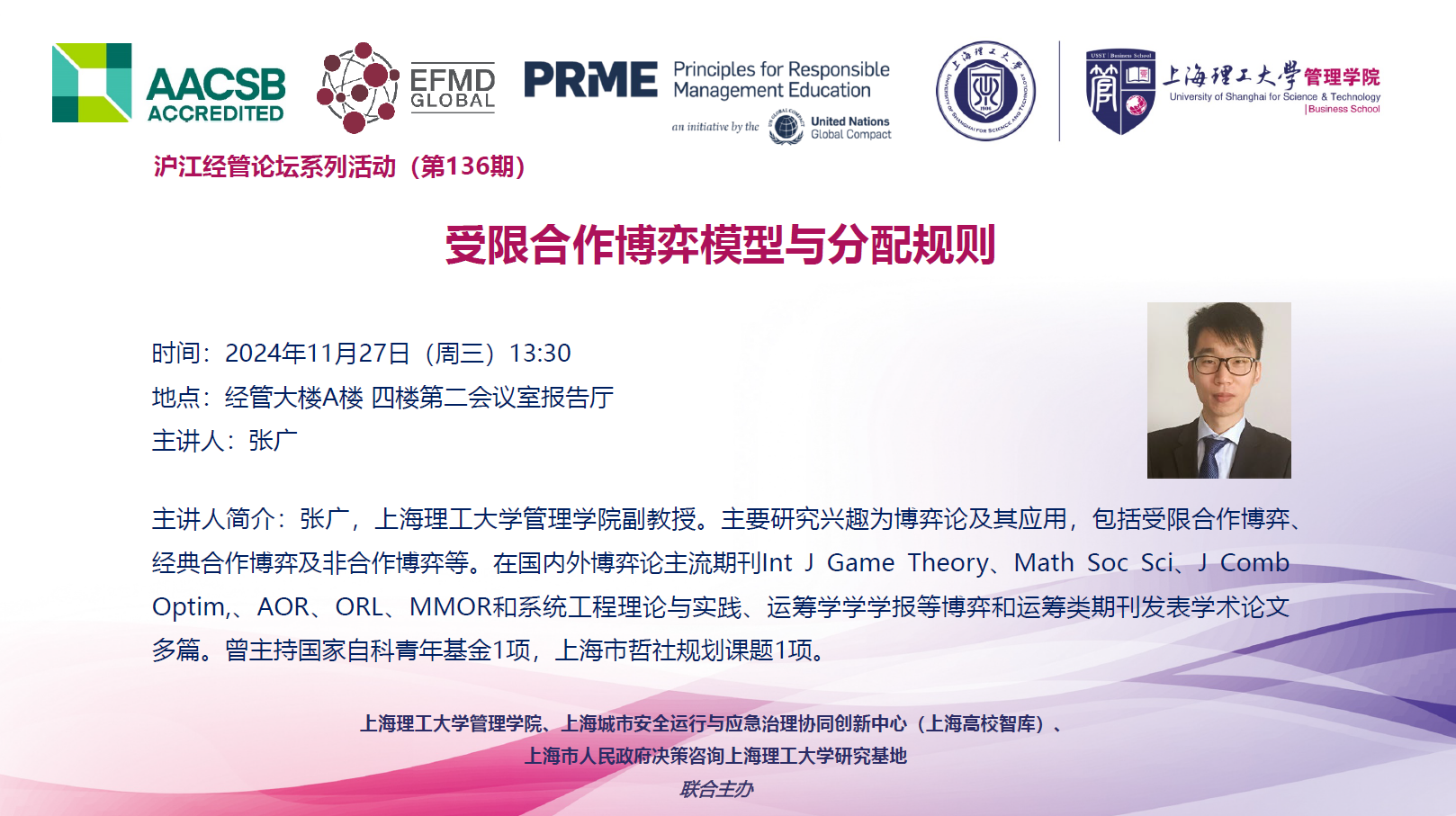 沪江经管论坛系列活动(第136期):受限合作博弈模型与分配规则