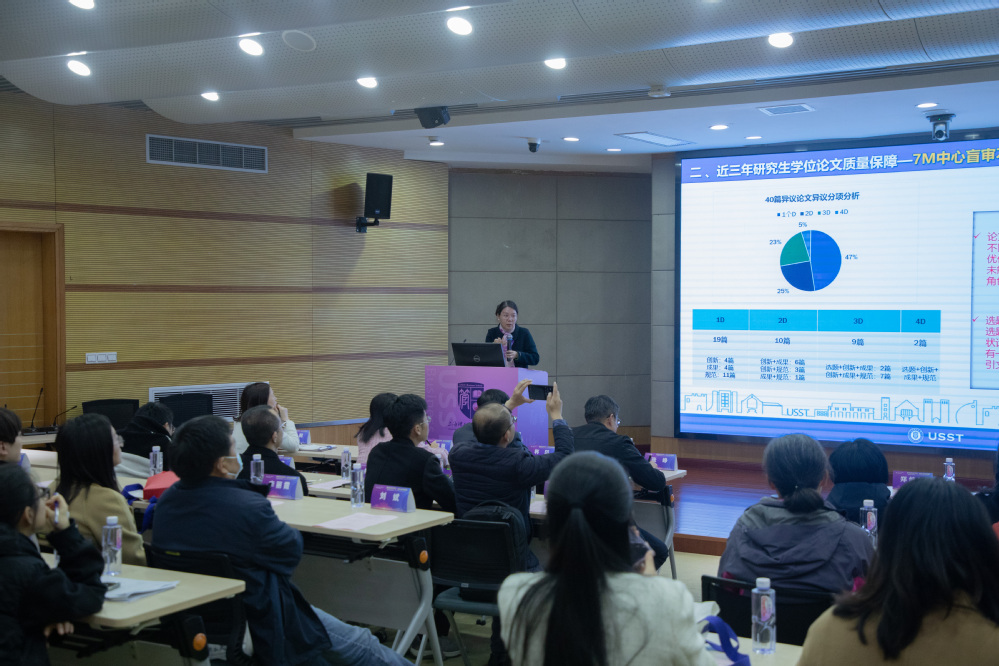 郑继红作了题为《7M学位中心研究生论文质量分析》的主题报告。她从研究生教育的基本情况出发,详细阐述了研究生学位论文质量保障的顶层设计、全过程管理、反馈控制、文件制度保障等方面内容。基于数据分析,她深入剖析了学位论文中存在的选题不合理、逻辑不清、内容分析单薄、写作及行文不规范等共性问题,为后续改进提供切实可行的指导方向。