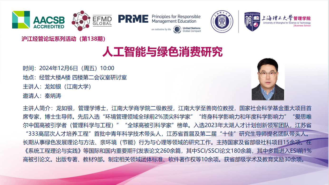 沪江经管论坛系列活动(第138期):人工智能与绿色消费研究