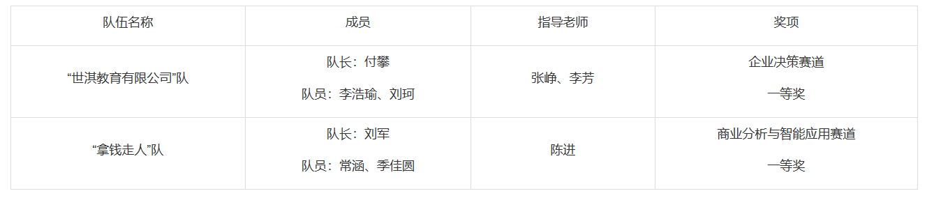 “世淇教育有限公司”队队长付攀以及队员李浩瑜、刘珂均来自23级非全日制MBA。她们不畏艰险,以勇攀高峰的精神投入比赛,甚至放弃了出国访学的宝贵机会。团队成员深入研究企业管理案例,不断完善策略设计和实践方案,展现出非凡的团队协作力与专业水平;“拿钱走人”队队长刘军和队员常涵来自23级系统科学专业,队员季佳圆来自23级应用经济学专业。此次大赛,商业分析与智能应用赛道为首次开设,面对无经验可循的全新赛制,成员们始终以不懈探索和持续创新的态度一路摸索前行。在指导老师的悉心指导下,两支队伍反复进行模拟演练,最终凭借精准策略和出色表现赢得专家评委的高度认可。