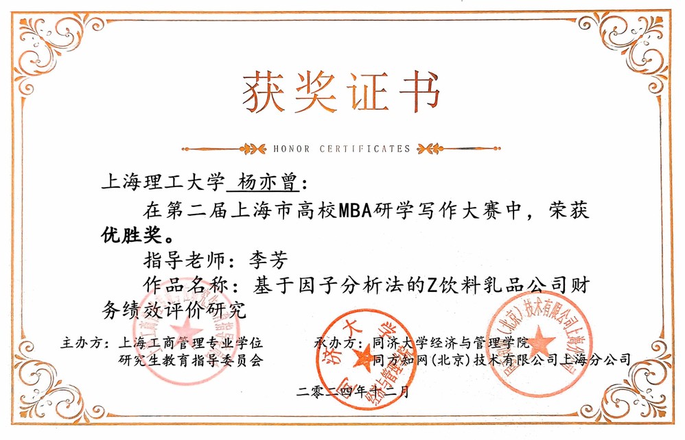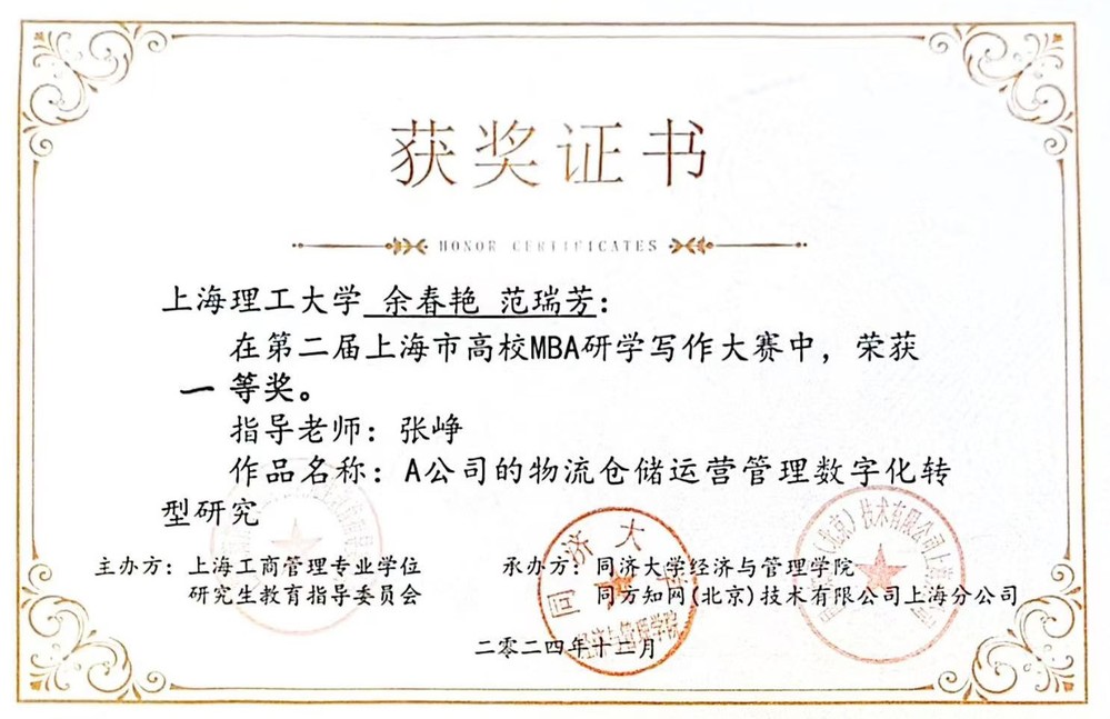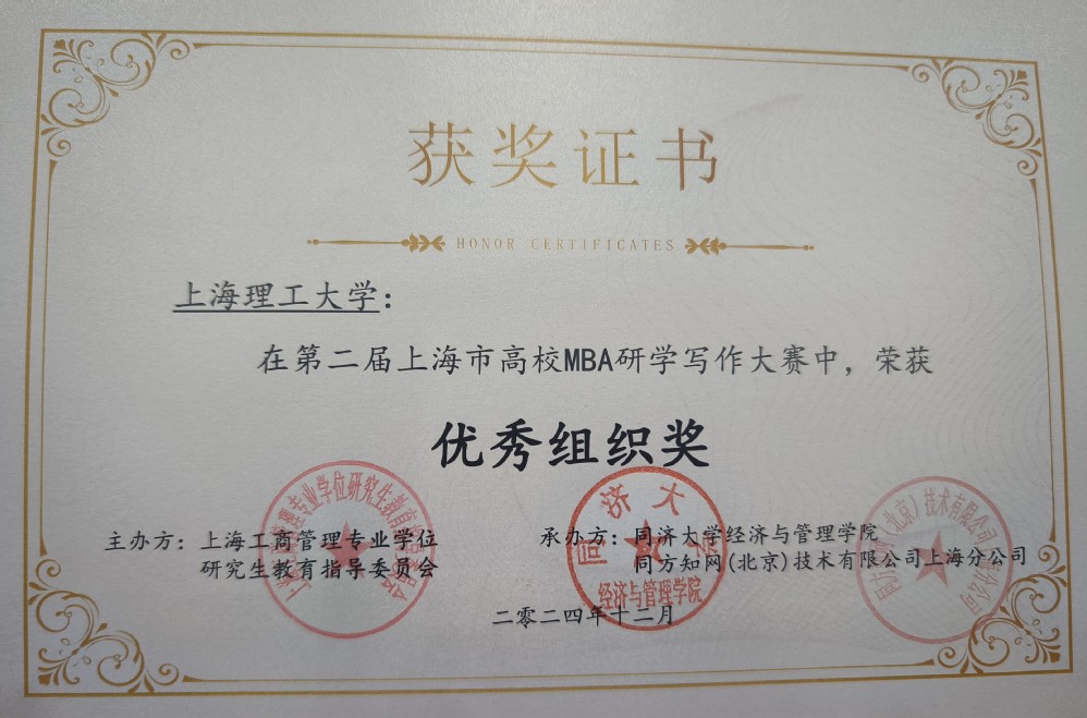 12月3日,由上海市学位委员会办公室指导,上海工商管理专业学位研究生教育指导委员会主办,同济大学经济与管理学院和同方知网承办的“第二届上海市高校MBA研学写作大赛决赛暨颁奖典礼”在同济大学举办。上海理工大学在本次大赛中表现优异荣获一等奖1项、优胜奖1项。上海理工大学凭借出色的组织工作荣获“优秀组织奖”,充分彰显我校在研究生培养与学术研究领域的卓越实力。
