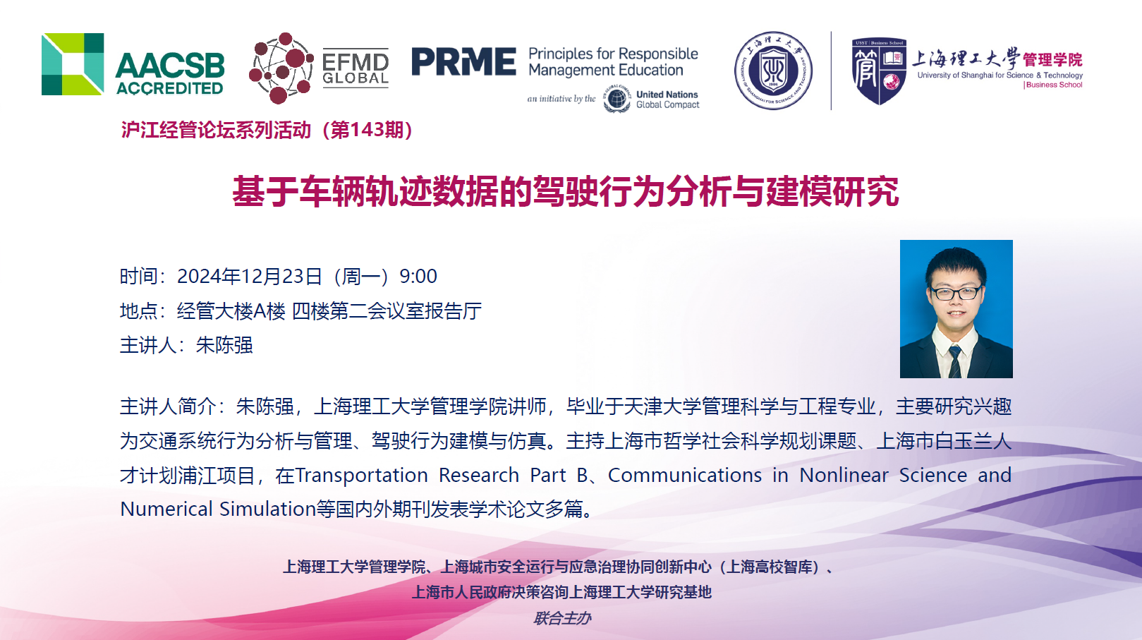 沪江经管论坛系列活动(第143期):基于车辆轨迹数据的驾驶行为分析与建模研究