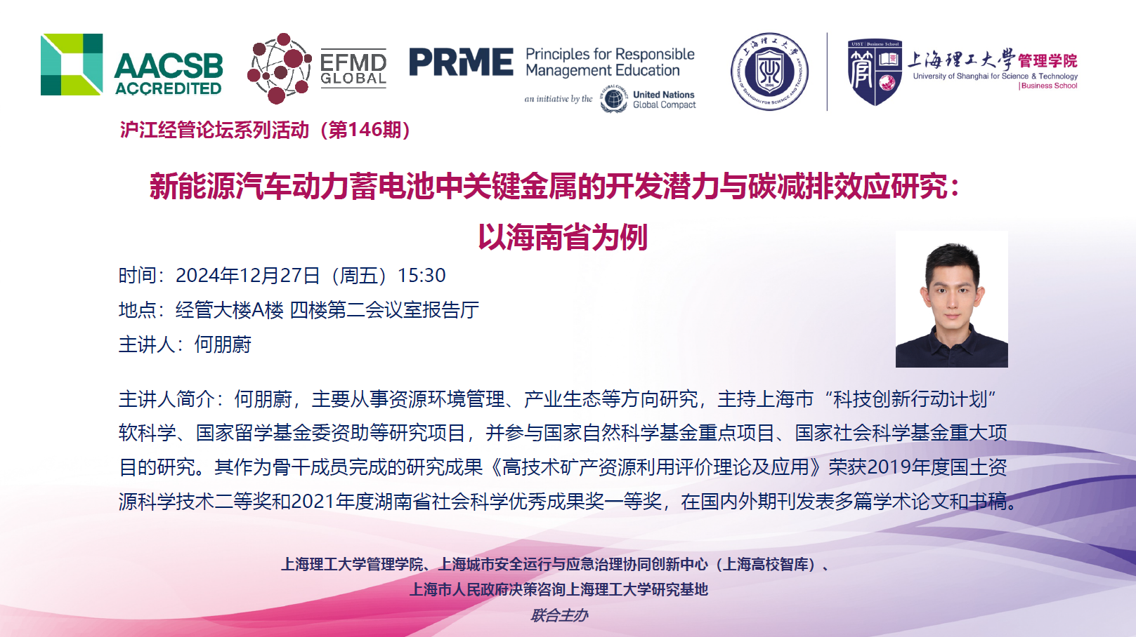 沪江经管论坛系列活动(第146期):新能源汽车动力蓄电池中关键金属的开发潜力与碳减排效应研究:以海南省为例