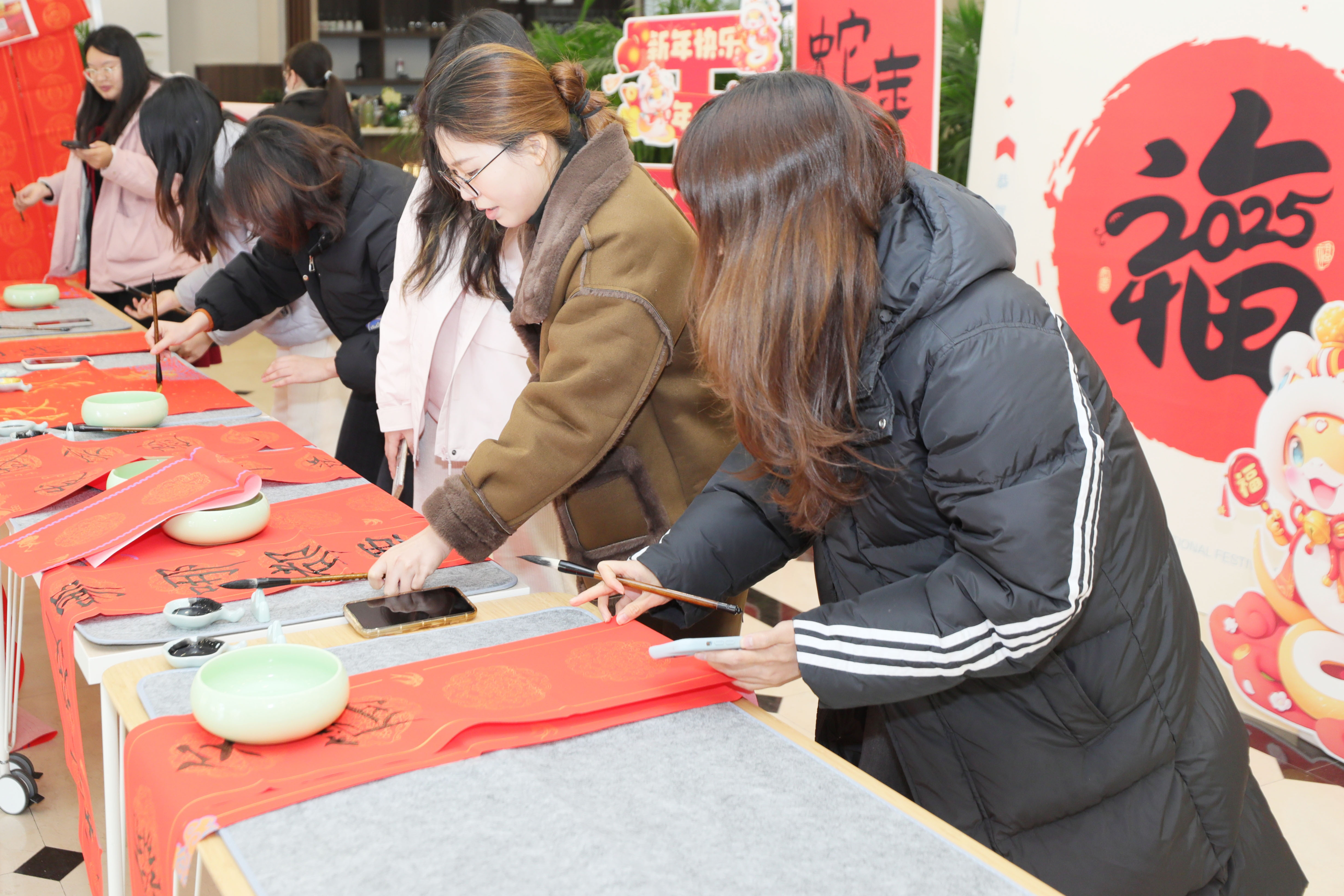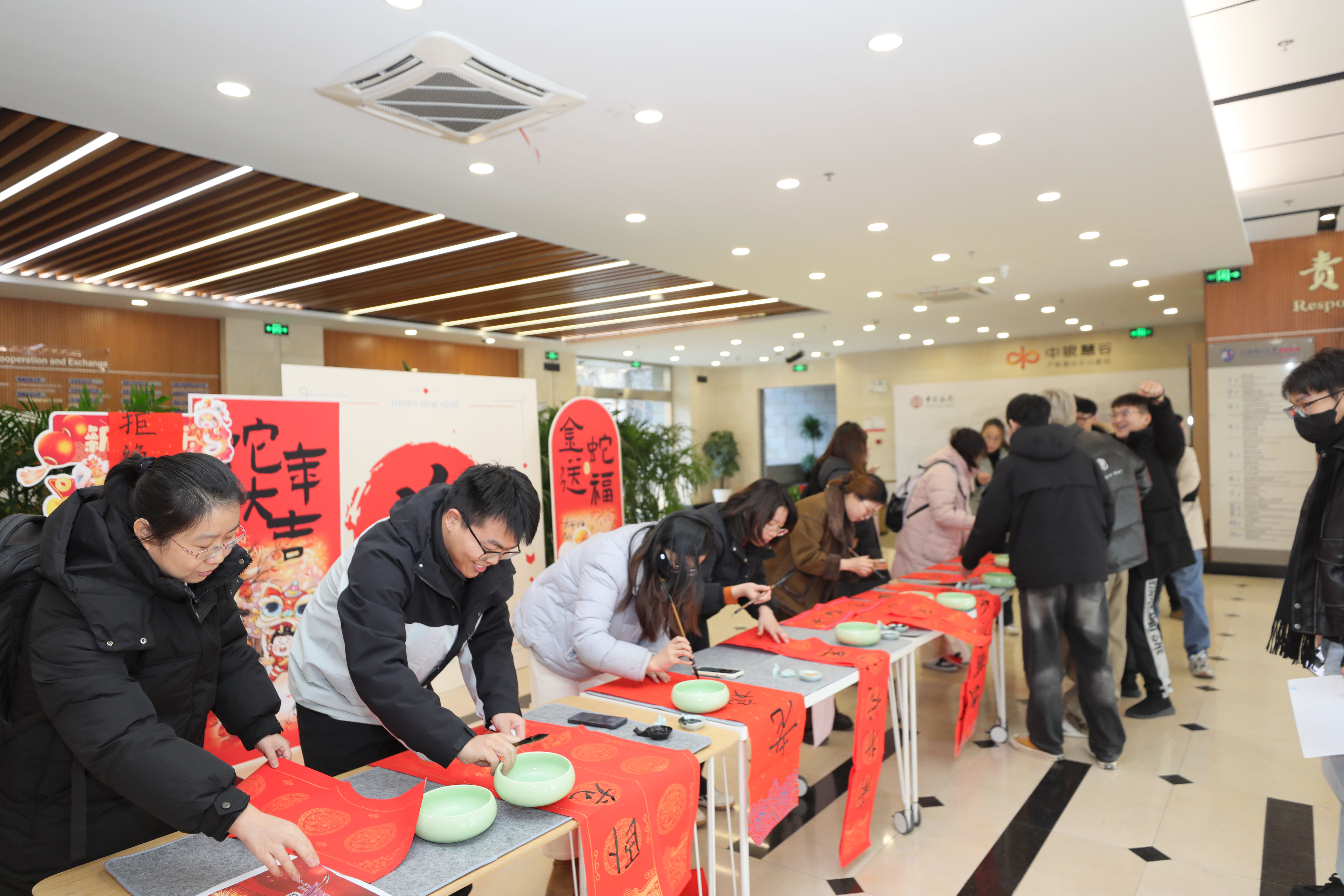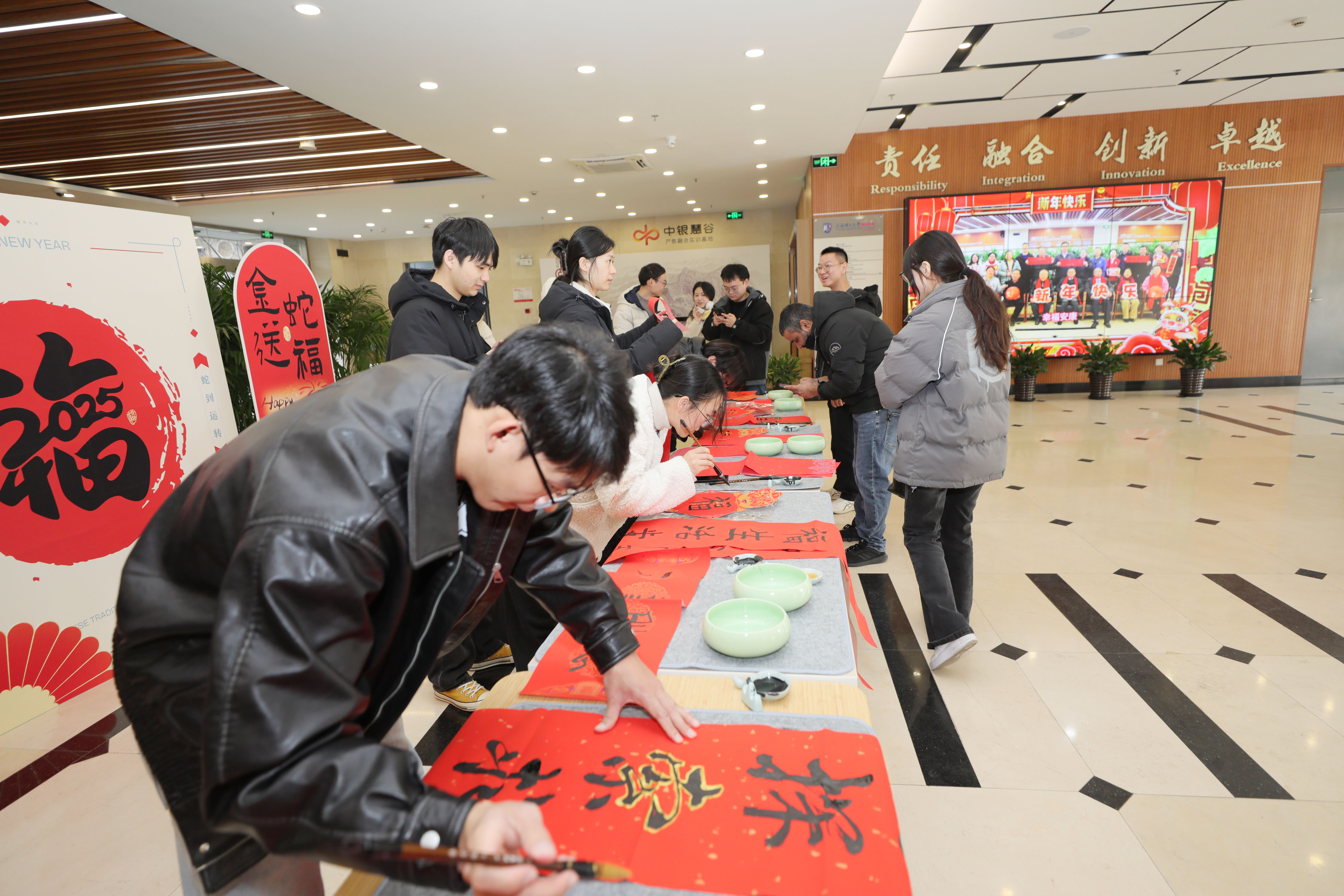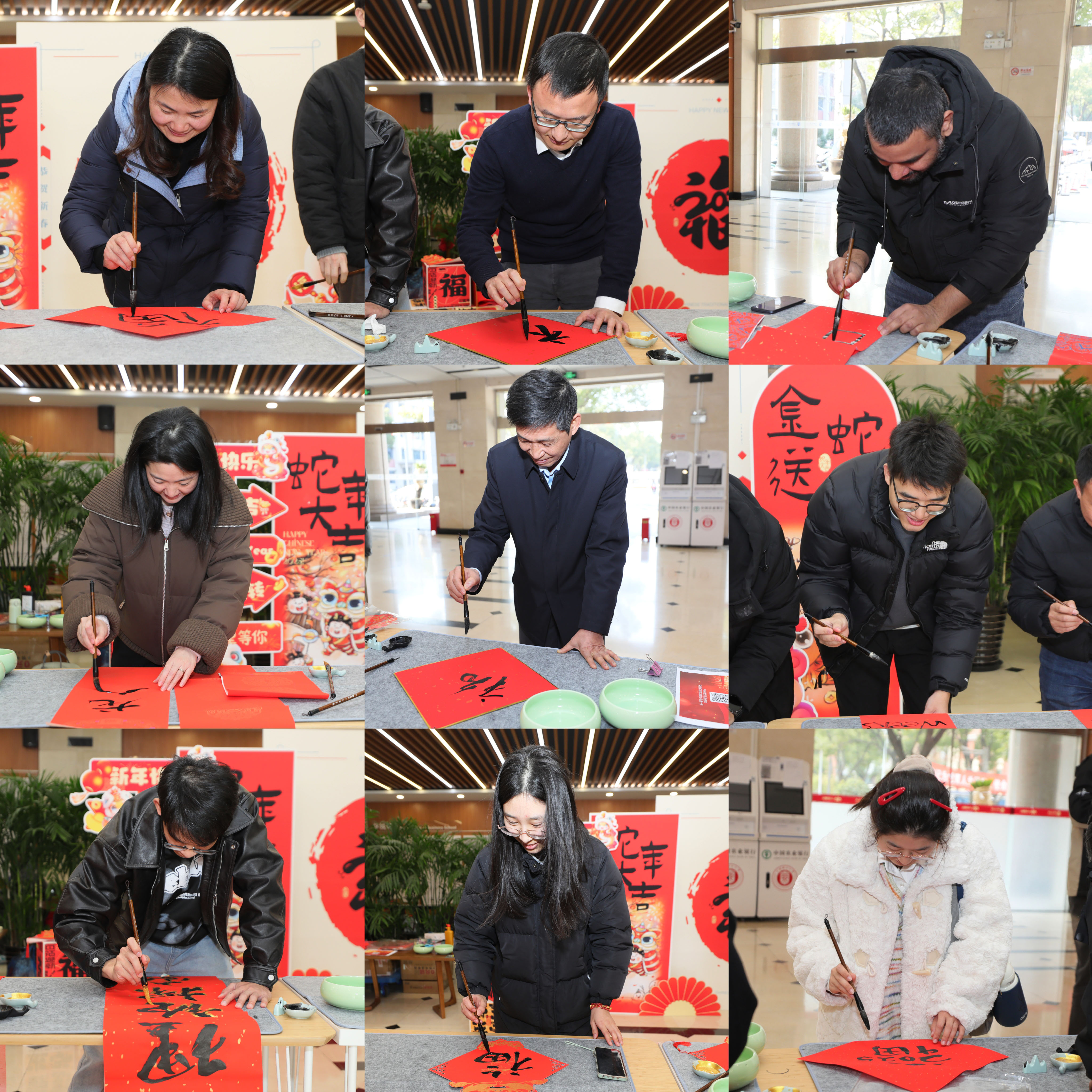 活动现场,师生们或凝神静气、专注书写,或挥洒自如、笔走龙蛇,各自展现出独特的书法风采,共同营造出浓厚的创作氛围,传递美好祝福与愿景,为学院增添了浓厚的节日氛围。