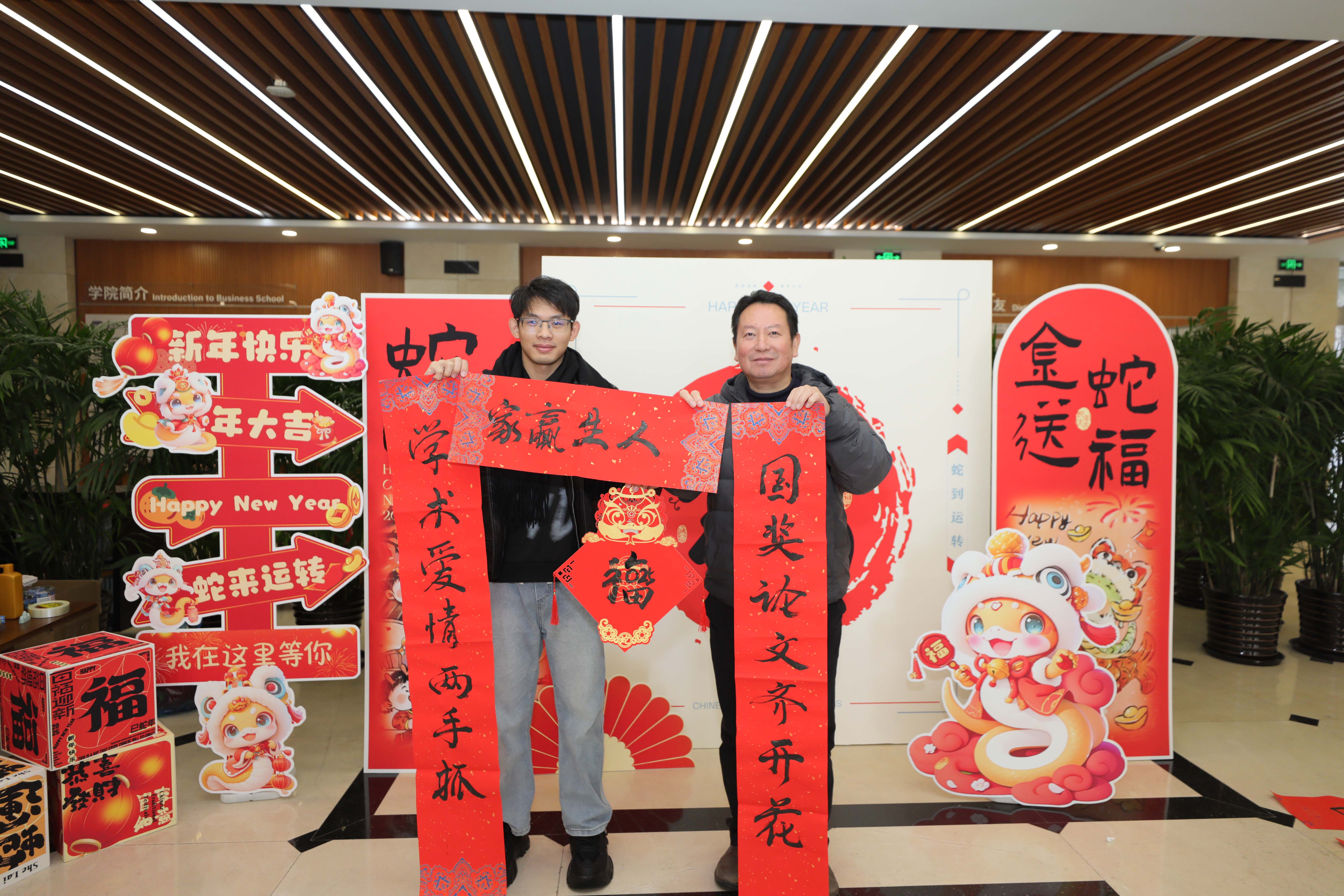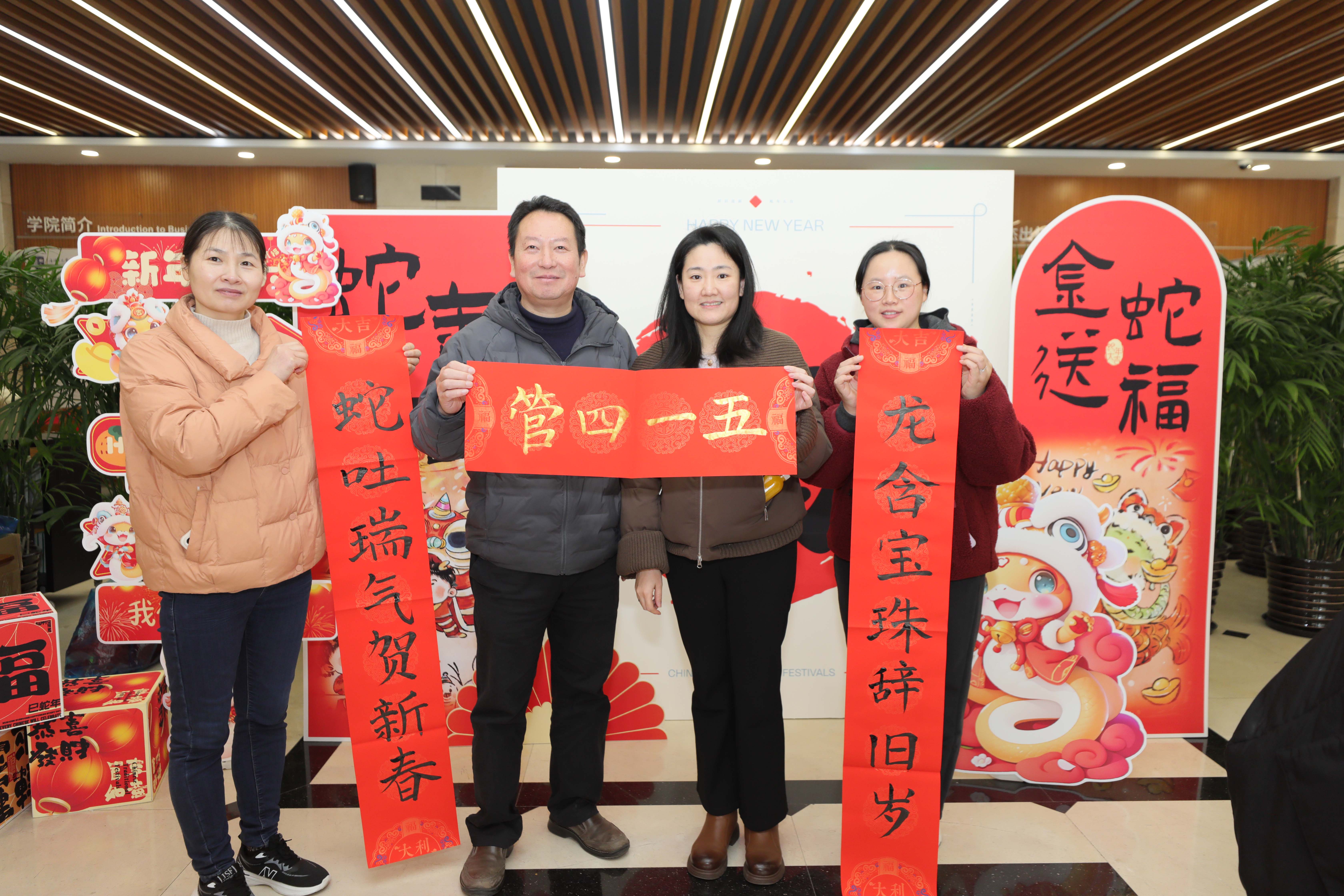 12月30日,管理学院在经管大楼A楼一楼大厅举办“迎元旦 庆新春”师生春联创作书写活动。本次活动旨在弘扬中华优秀传统文化,营造浓厚的新春节日氛围,激发学院师生的创作热情与文化自信,促进师生间互动交流,推动校园文化建设,营造良好育人环境。