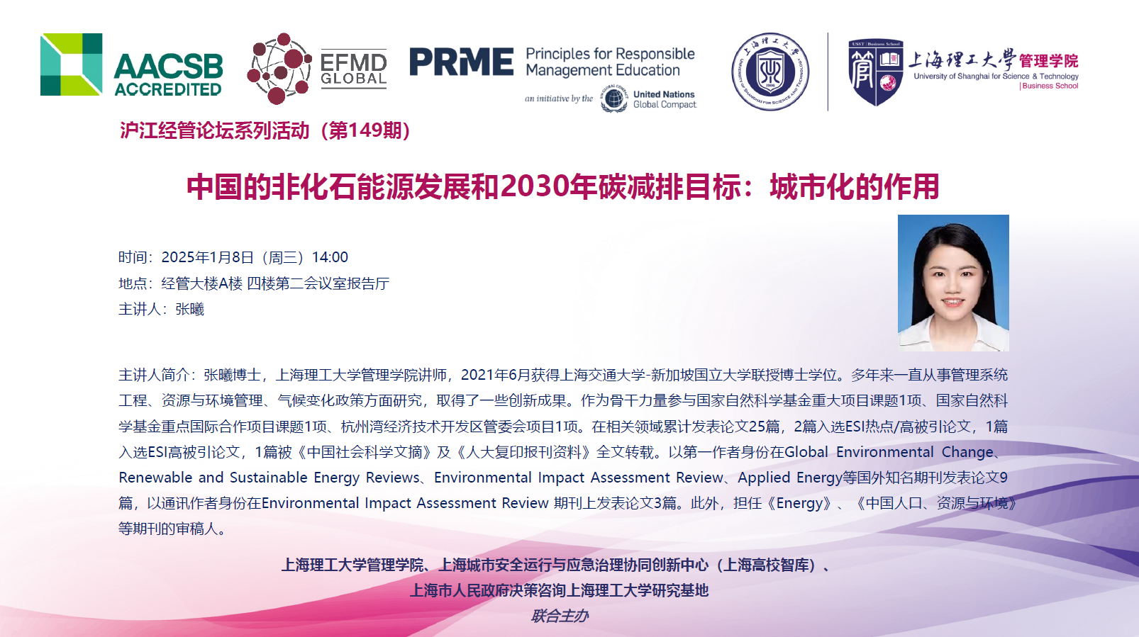 沪江经管论坛系列活动(第149期):中国的非化石能源发展和2030年碳减排目标:城市化的作用