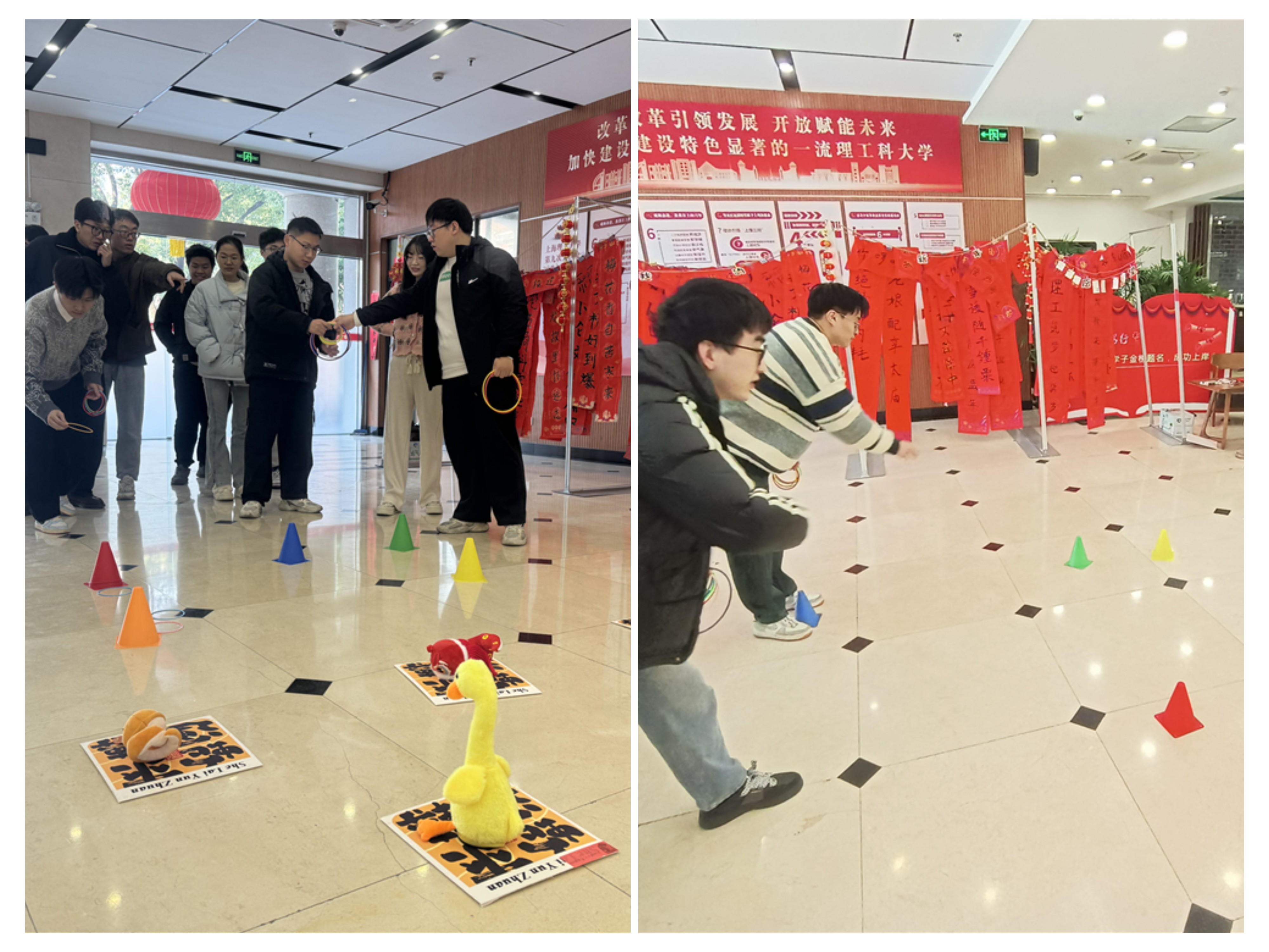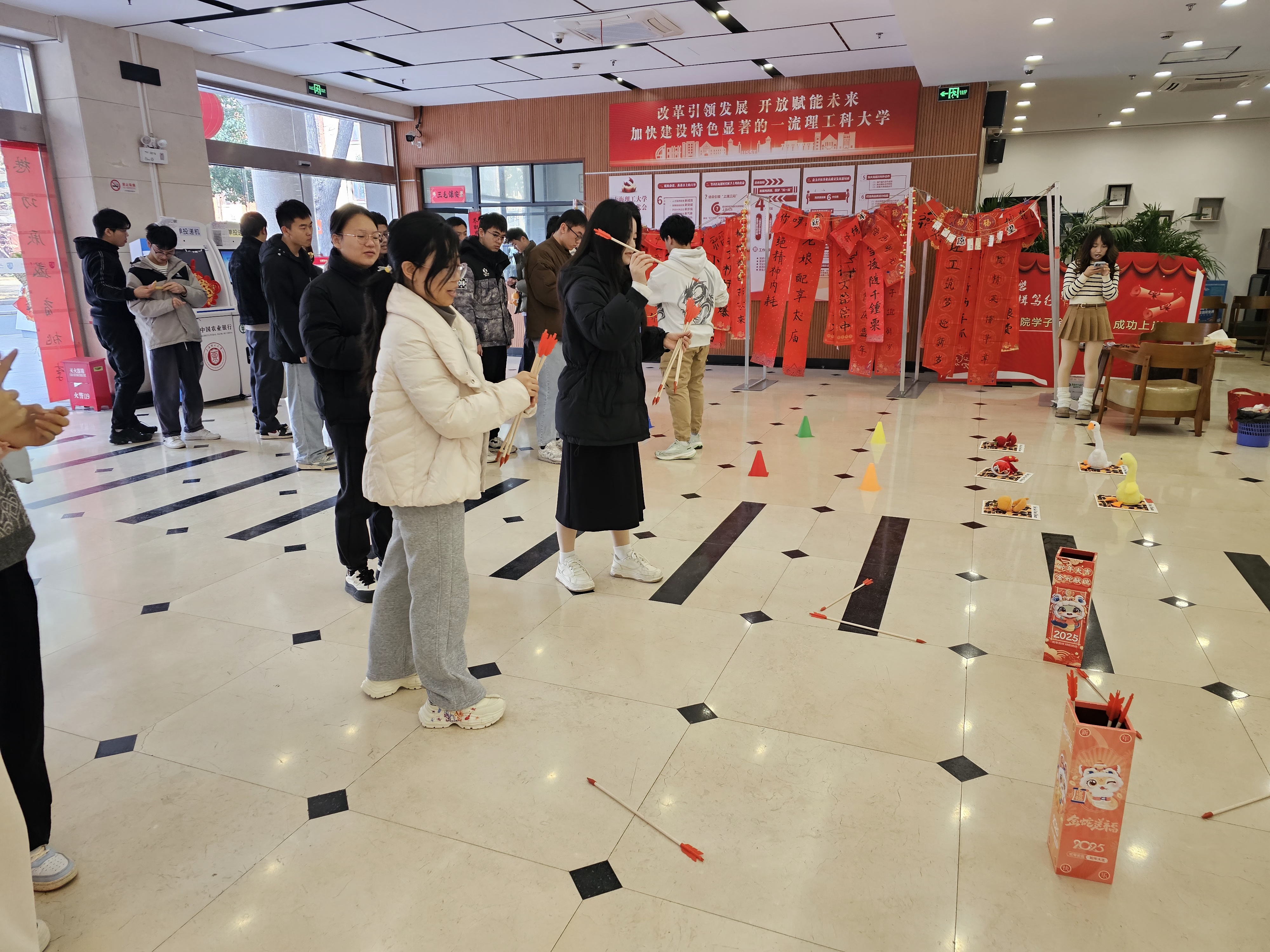在迎新春“绘福蛇”活动中,学生们沉浸于创作,纷纷挥毫泼墨,一幅幅灵动的“福蛇”跃然纸上,同学们在笔墨间寄托了对新年的美好期许;“祈愿签”活动以其独特的方式,为留校学子们的新年增添了一份特别的期待与祝福,学生们认真地写下自己的新年愿望,或是对家人的思念与祝福,或是对未来的憧憬与规划;“圈福运”活动尤为引人瞩目,随着圈圈飞出,现场不时传来欢呼声与惋惜声,成功套中的参与者欢呼雀跃,仿佛真的圈住了满满的福运;在“投壶乐”活动中,每位同学都专注投入,他们每投中一箭,都引得同伴及围场观众一阵掌声和欢呼;在“灯笼坊”活动中,大家围坐桌旁,兴致勃勃地挑选材料,开始动手制作属于自己的独特灯笼。这些灯笼不仅承载着大家对新年的美好祝愿,更成为了传承中华传统文化的小小使者,大家深刻感受到了传统手工艺的魅力与乐趣。此次文化活动,不仅丰富了留校学生们的校园文化生活,同时增强了大家的凝聚力和归属感,让大家在欢乐祥和的氛围中感受到了传统文化的魅力,充分表达了大家对新年的期待和对未来的憧憬。