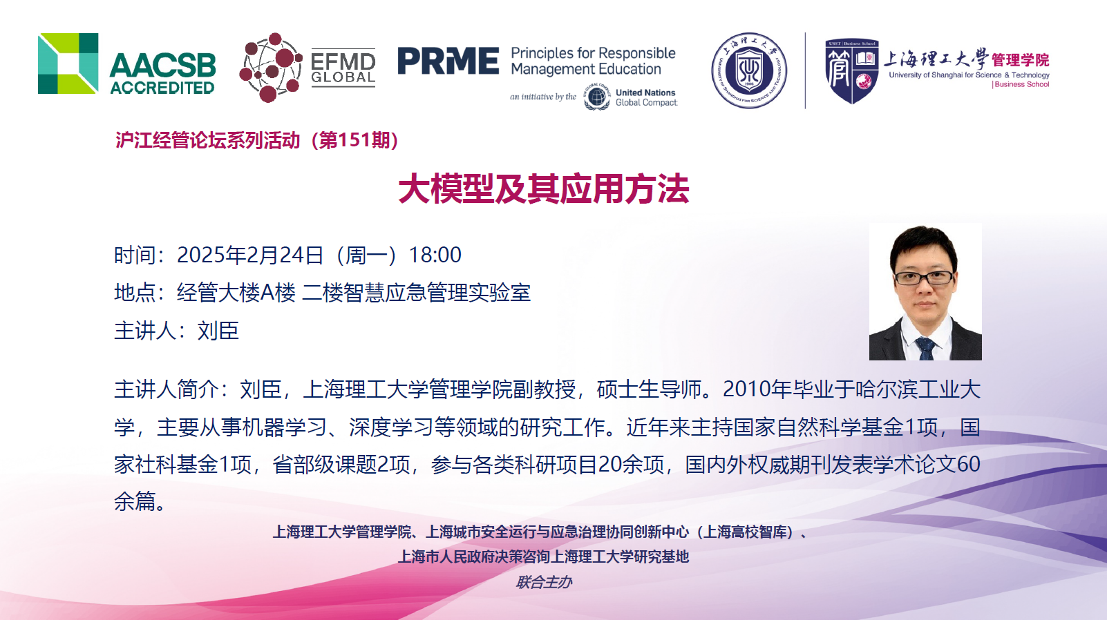 沪江经管论坛系列活动(第151期):大模型及其应用方法