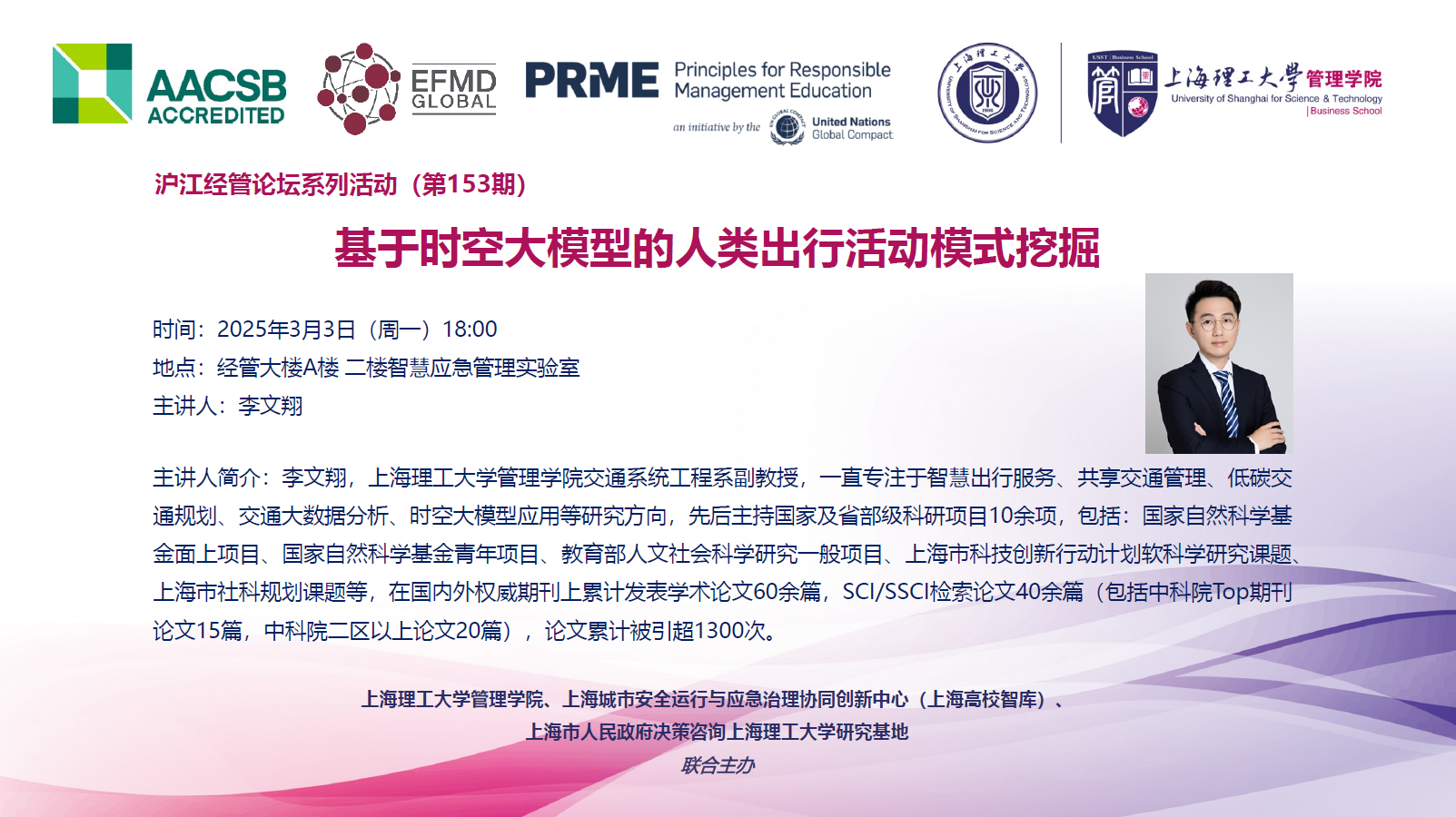 沪江经管论坛系列活动(第153期):基于时空大模型的人类出行活动模式挖掘