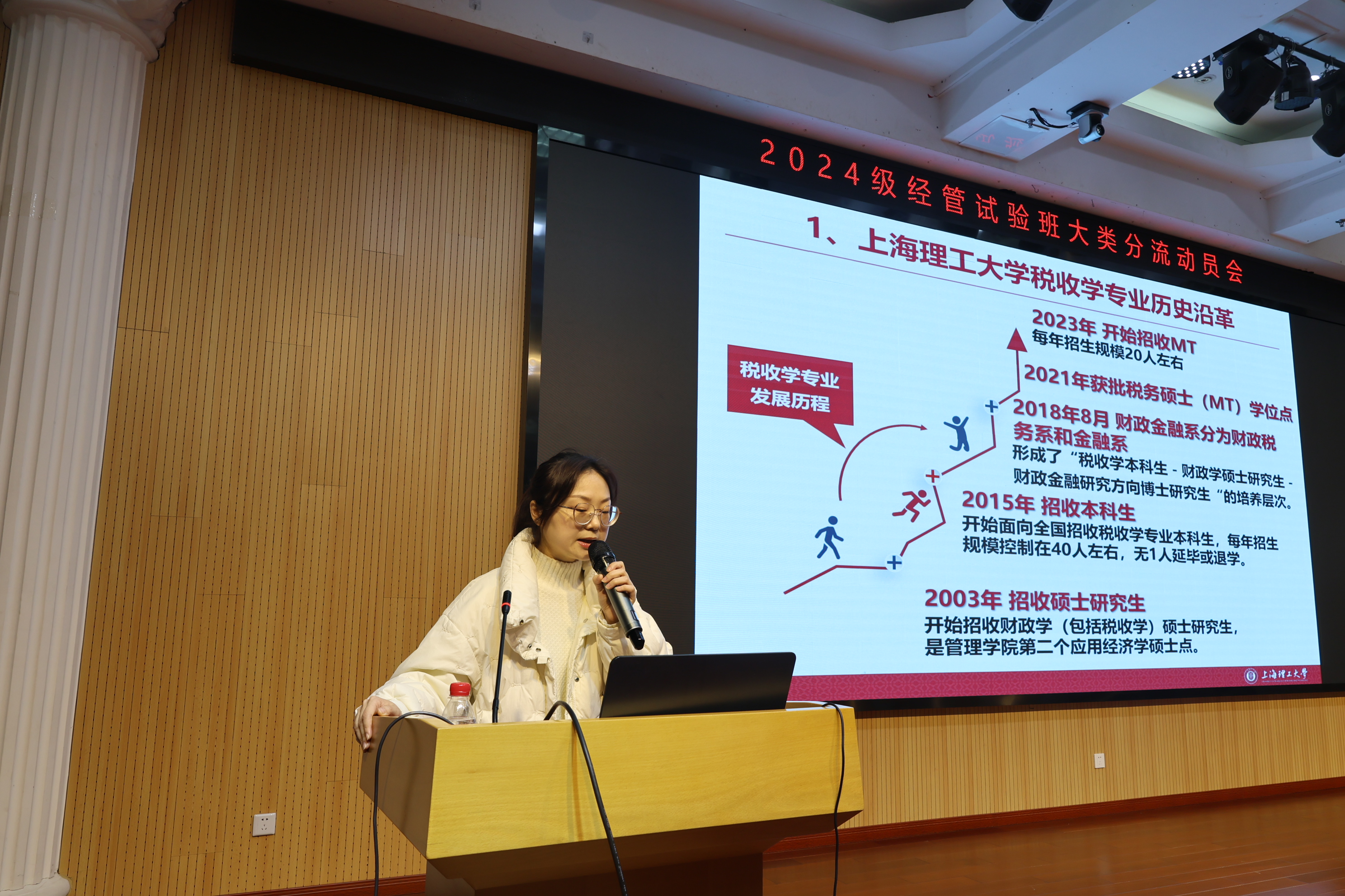 赵艾凤、秦炳涛、张玲、黄晶与谢媛依次对税收学、国际经济与贸易、金融学、会计学和公共事业管理五个本科专业进行了详细介绍,内容涵盖专业特色、课程设置、就业前景以及学科发展趋势等,使同学们对各专业有了更加全面的认识,为后续的专业分流奠定了坚实的基础。