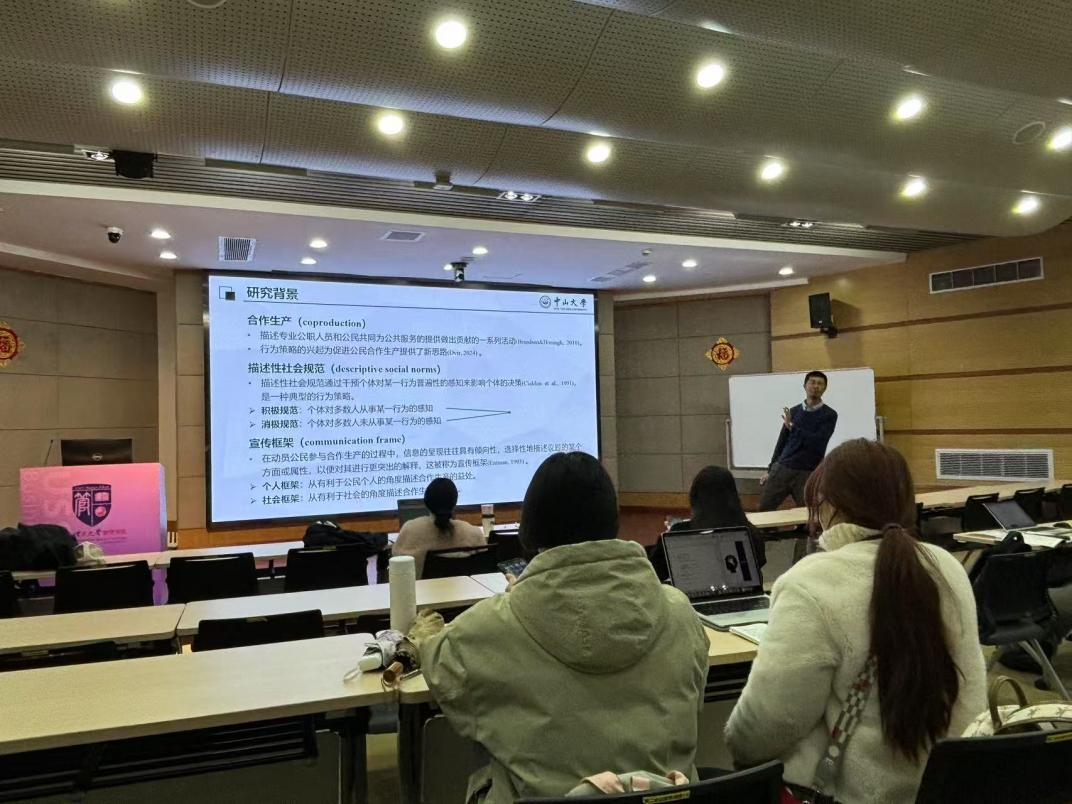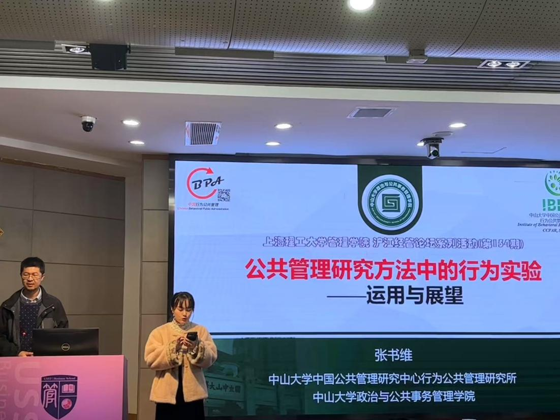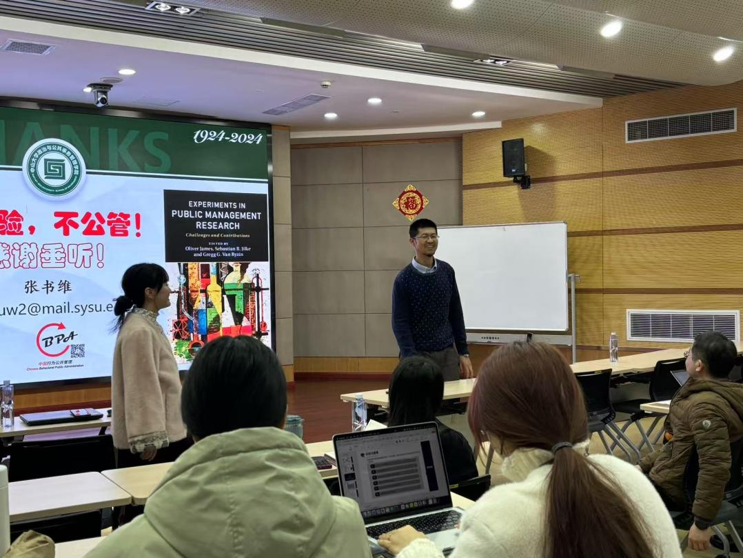 3月13日下午,管理学院举办学术报告会,特邀中山大学张书维教授作题为《公共管理研究方法中的行为实验:运用与展望》的专题讲座。公共管理系主任朱水成、公共管理系教师赵欣、张怡梦及几十余名师生齐聚一堂,共探学术前沿。报告会由张怡梦主持。