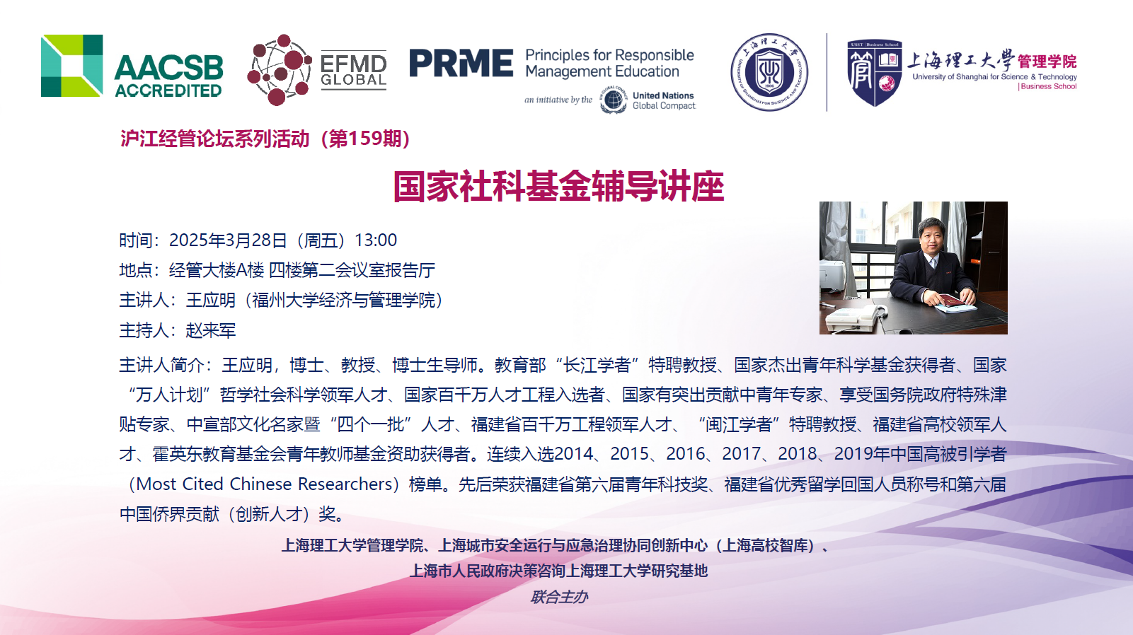 沪江经管论坛系列活动(第159期):国家社科基金辅导讲座