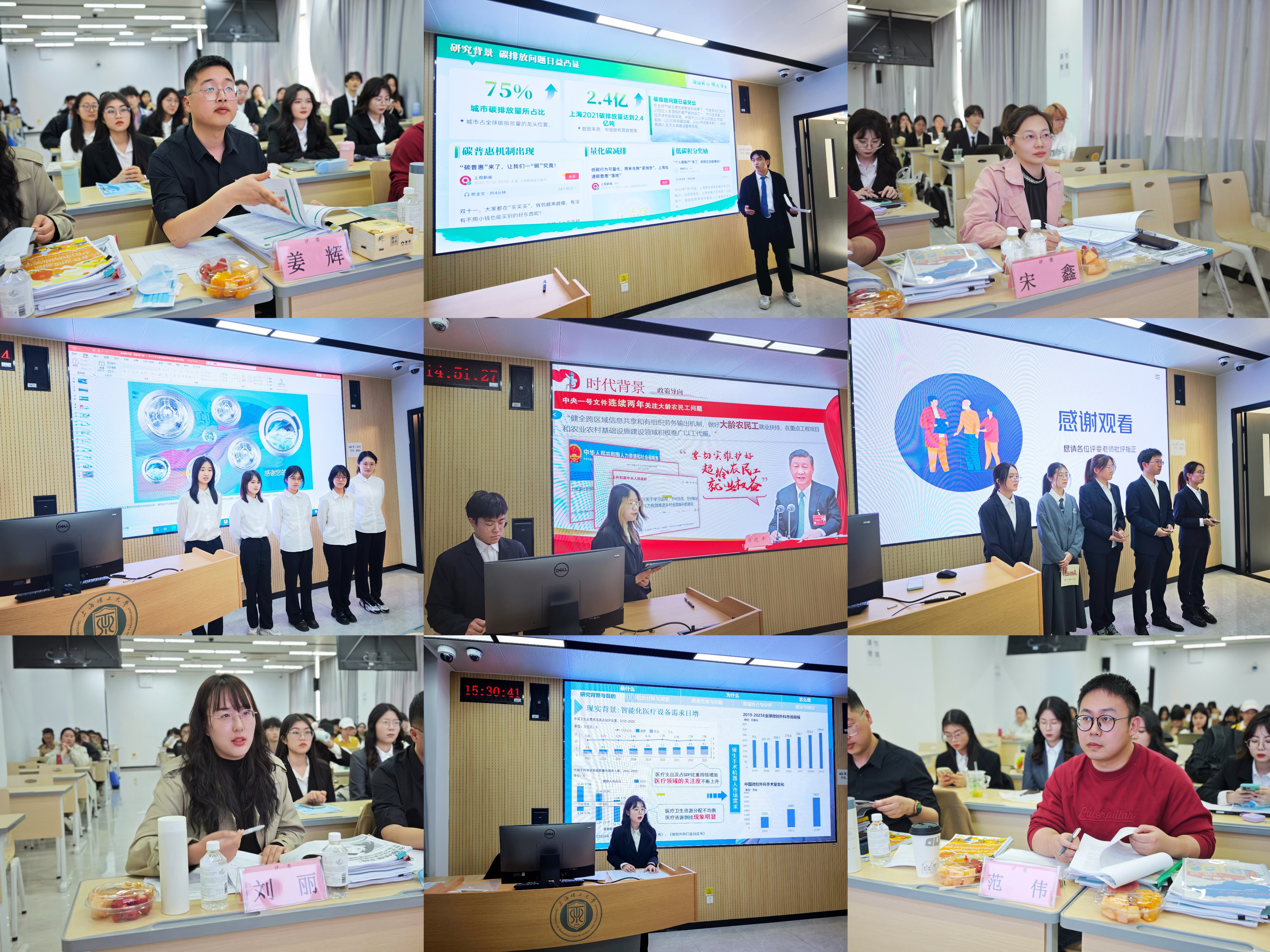 自2023年首次参赛以来,我校连续三年组织参与该项赛事,过往两届累计斩获国赛一等奖1项、三等奖5项,市级奖项十余项,充分展现了上理学子的创新思维与实践精神。本届赛事我校参赛人数再创新高,共有225名同学报名参赛,选拔赛的组织和策划过程得到了管理学院本科教务指导和支持。经过知识赛网考、校内选拔赛初审等层层选拔,最终共有16支队伍入围本次选拔赛决赛。选拔赛邀请了同济大学市场营销系姜辉,上海理工大学管理学院公共管理系副主任范伟、会计系教师宋鑫,工商管理系教师刘丽担任评委。选拔赛由工商管理系教师胡钟慧主持。