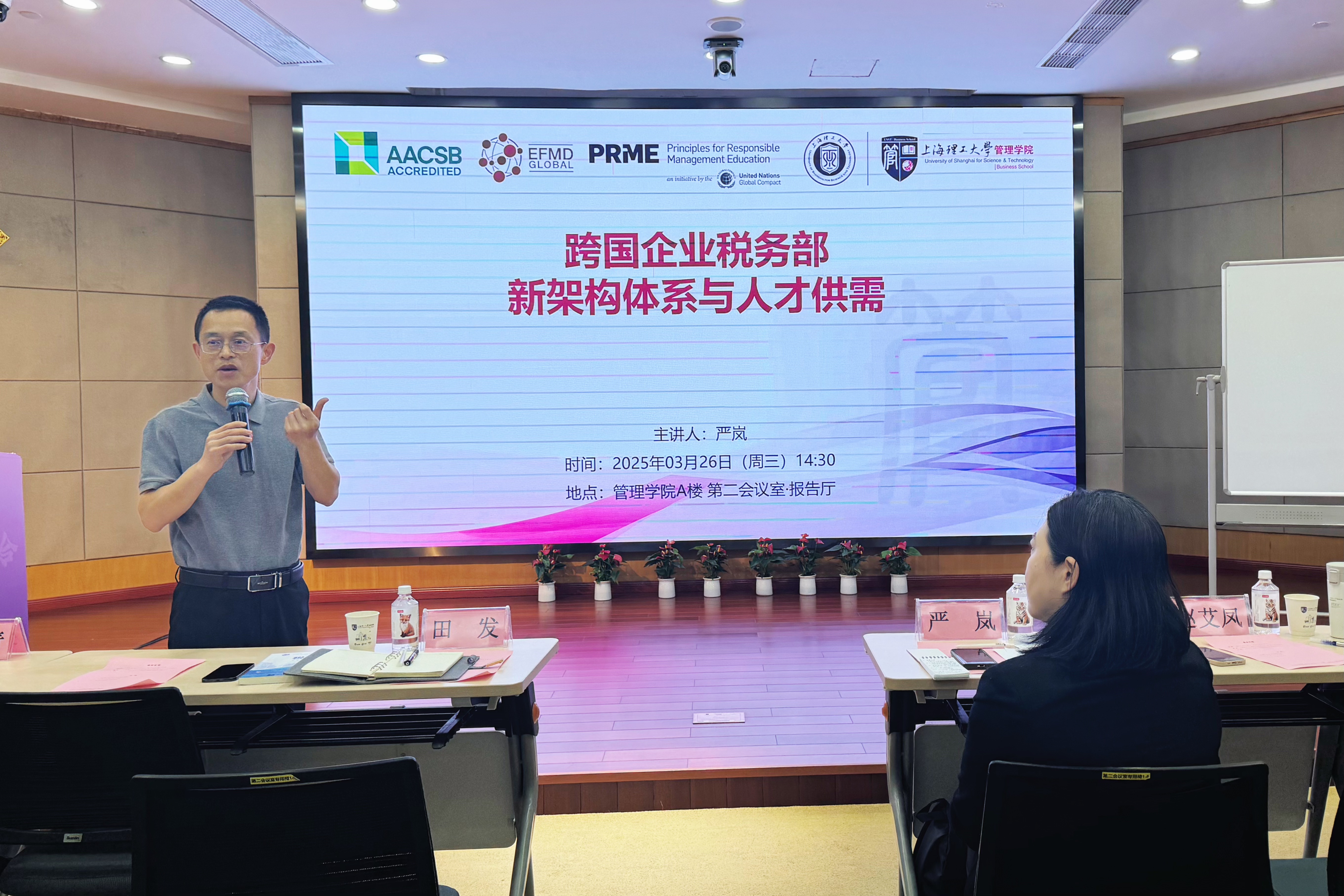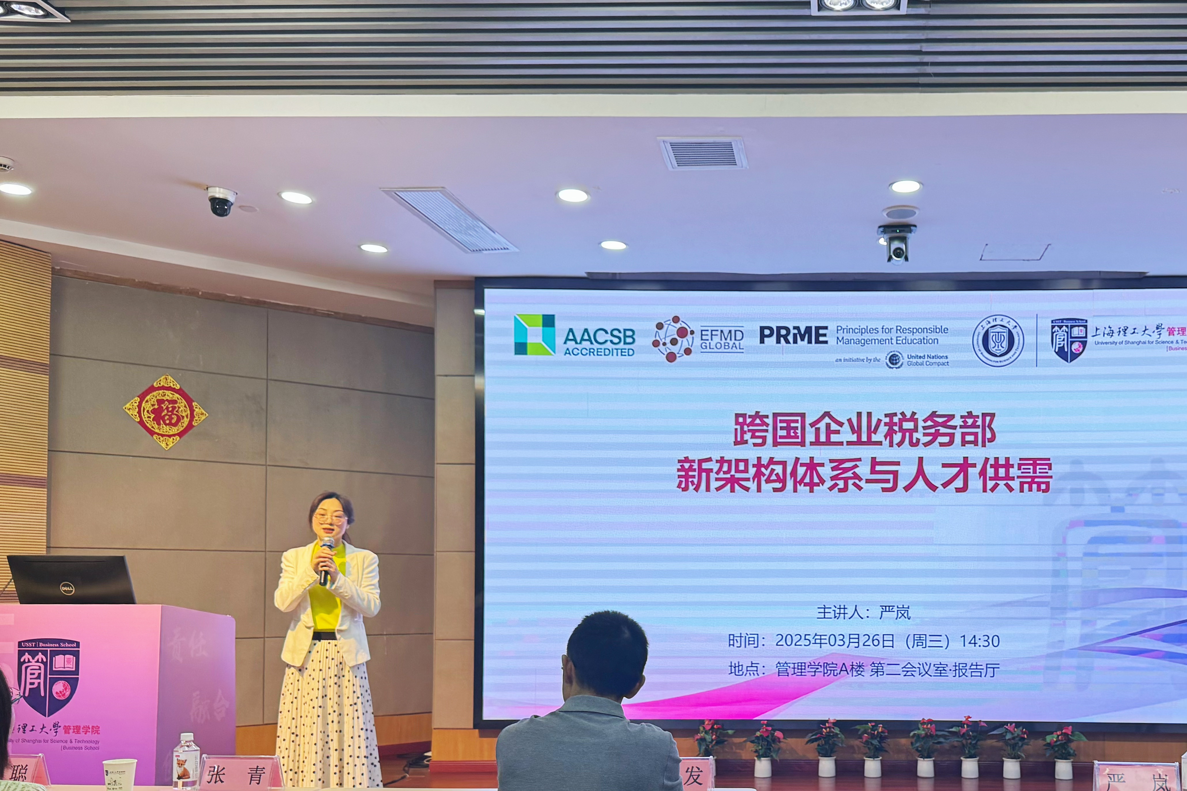 3月26日,管理学院邀请联合利华北亚区税务总监严岚女士开展题为“跨国企业税务部新架构体系与人才供需”的专题讲座。管理学院相关专业师生参会。应用经济学一级学科带头人、税务专硕项目主任田发致辞,财政税务系副主任赵艾凤主持讲座,管理学院相关学科师生参加讲座。