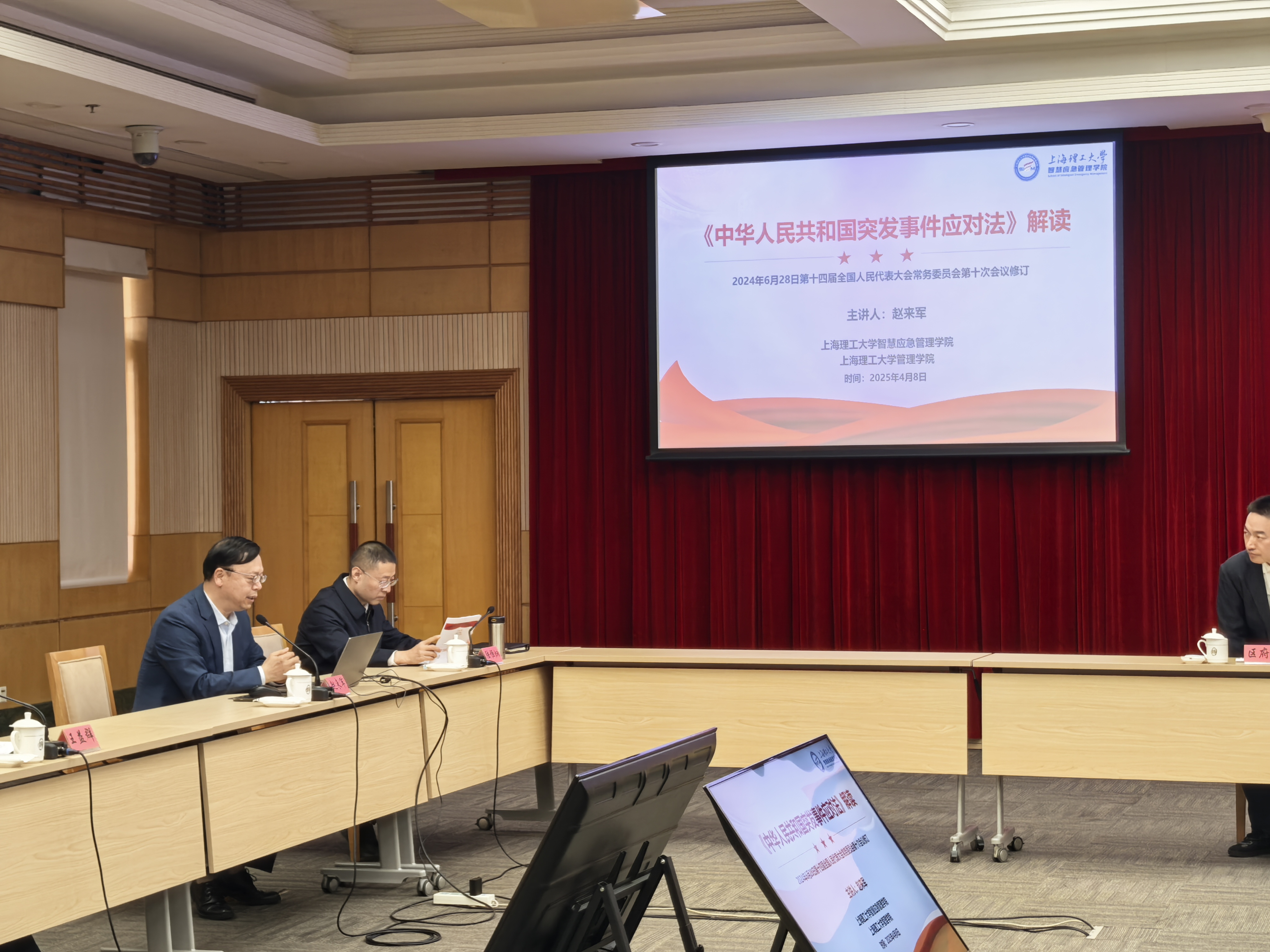 4月8日上午,奉贤区第六届人民政府第95次常务会议在区会议中心第五会议厅举行。奉贤区委副书记、区长王益群主持会议,区委常委、副区长刘伟、副区长陆恒炯出席会议,区发展改革委、区经委、区教育局、区科委、区公安分局等相关部门及各街镇主要负责人参会。上海理工大学管理学院院长、智慧应急管理学院执行院长赵来军教授应邀在会上作《中华人民共和国突发事件应对法》专题解读报告,为全区领导干部深化法治思维、提升应急管理能力提供指导。