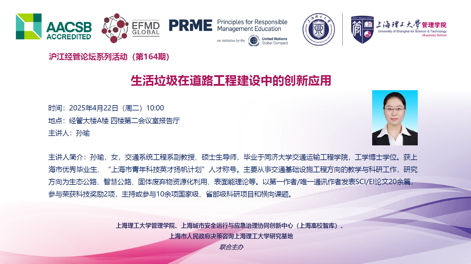 沪江经管论坛系列活动(第164期):生活垃圾在道路工程建设中的创新应用