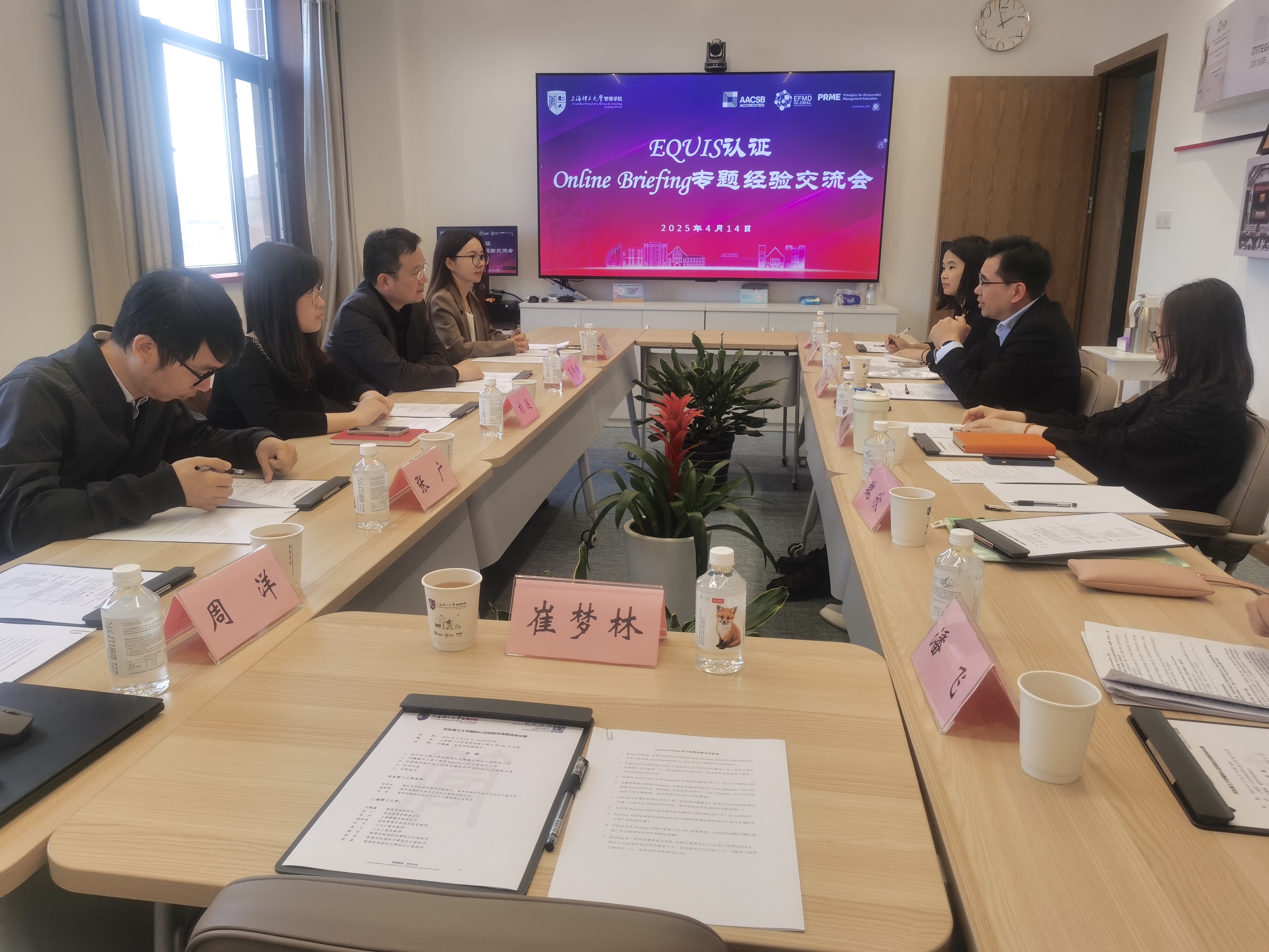 为做好EQUIS认证筹备工作,4月14日下午,管理学院在经管大楼A楼501会议室召开“欧洲质量改进体系(EQUIS)认证在线说明会(Online Briefing)专题经验交流会”,邀请华东理工大学锡比乌中欧国际商学院副院长、商学院国际交流与认证办公室主任彭泽余,商学院国际交流与认证办公室副主任潘雪菁、高级认证专员刘涟一行来我院进行经验分享交流。管理学院副院长刘魏巍,系统科学系副系主任张广,工商管理系副系主任周洋,相关国际认证工作推进组成员及国际化建设办公室全体成员参加会议。会议由刘魏巍主持。
