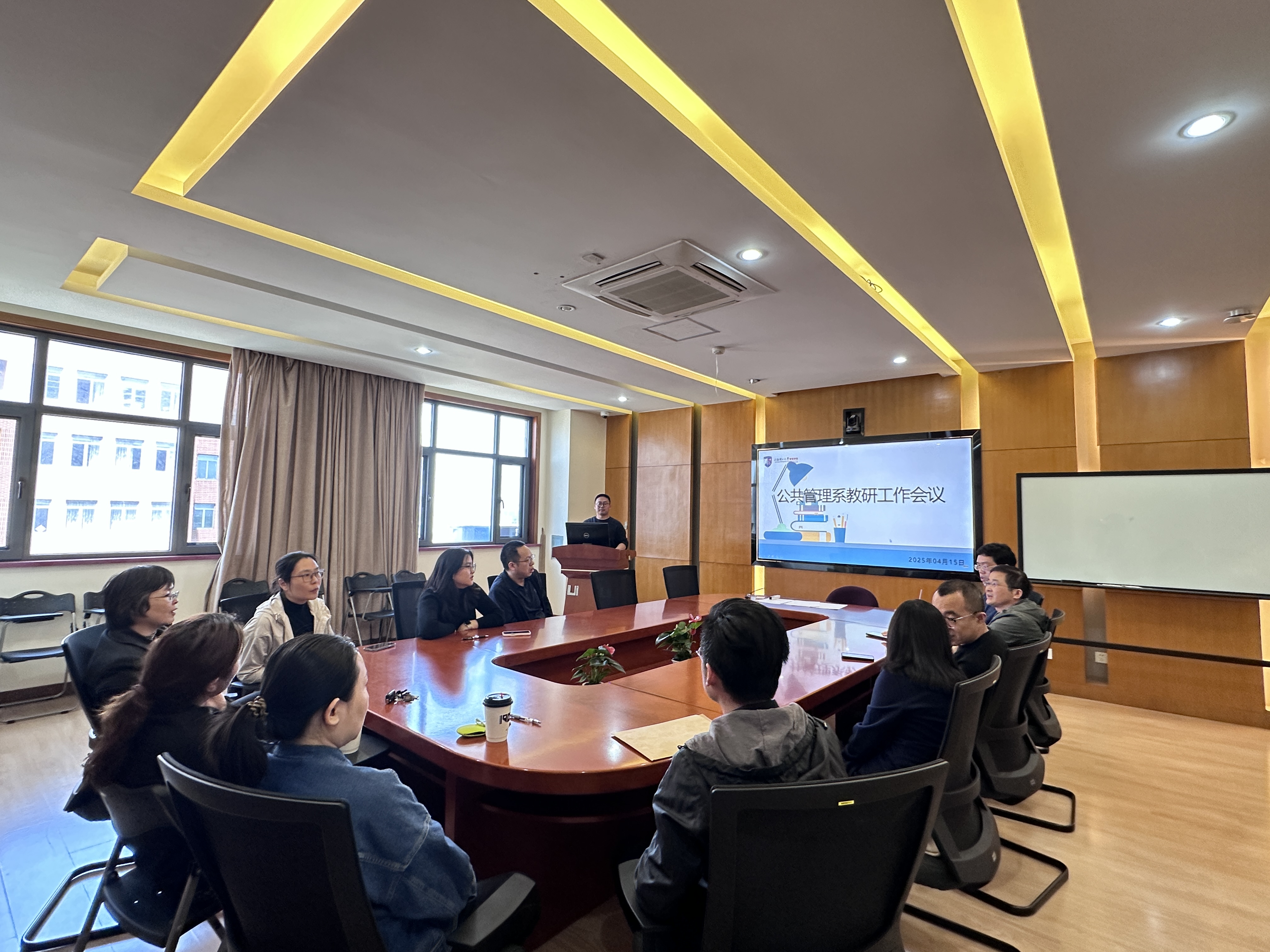 4月15日中午,公共管理系于管院910会议室召开2024-2025学年第二学期期中教研工作会议。本次会议由系副主任范伟主持,公共管理系全体教师参会,会议主要围绕近期教务考务的相关事宜进行了深入交流与讨论。