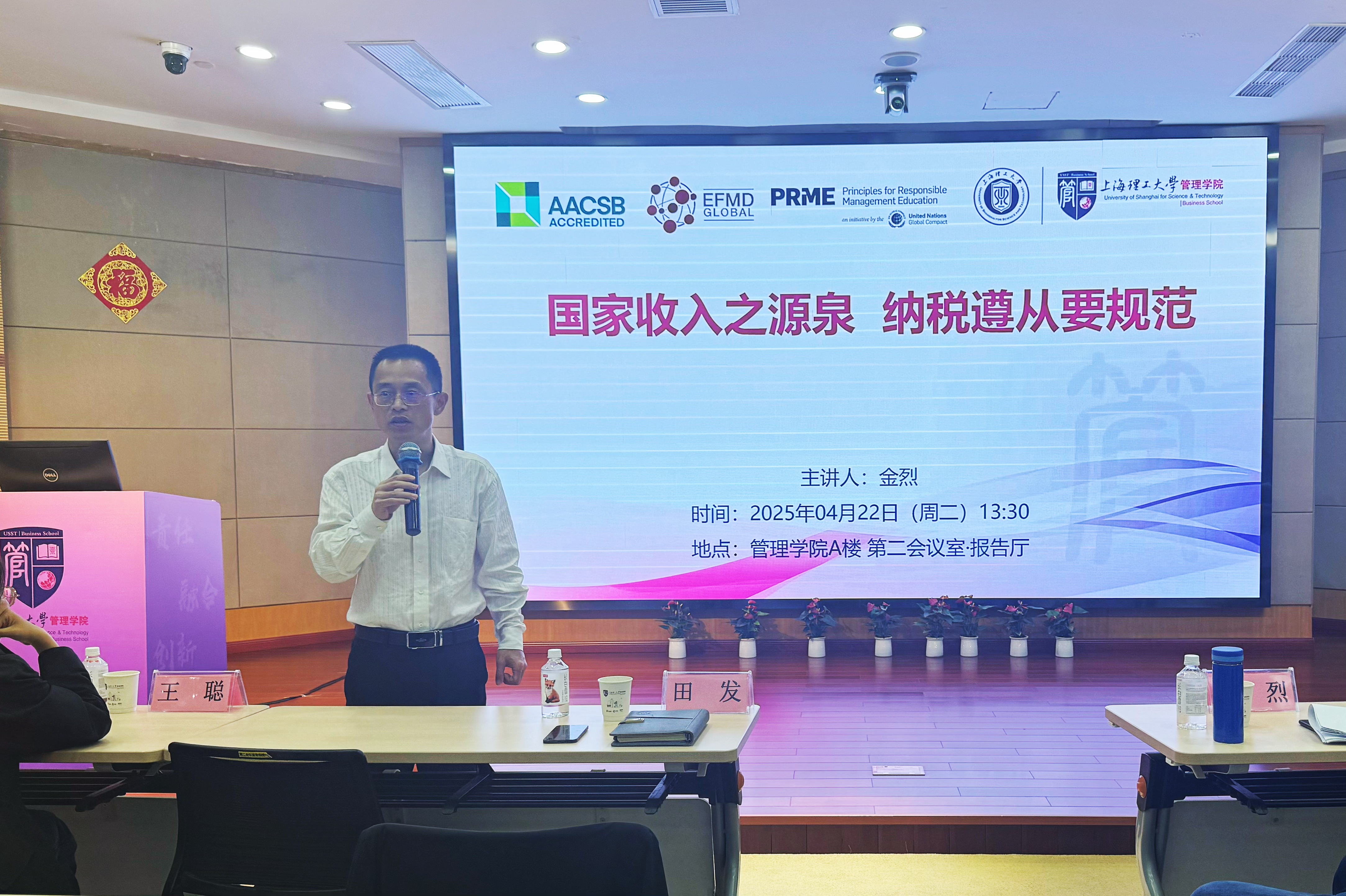 4月22日,管理学院专业学位教育中心邀请到原国家税务总局上海市税务局三级高级主办、高级会计师金烈先生开展题为《国家收入之源泉 纳税遵从要规范》的专题讲座。本次讲座由管理学院应用经济学学科带头人、税务专硕项目主任田发主持。税务硕士点专业教师王聪及相关专业师生参会。