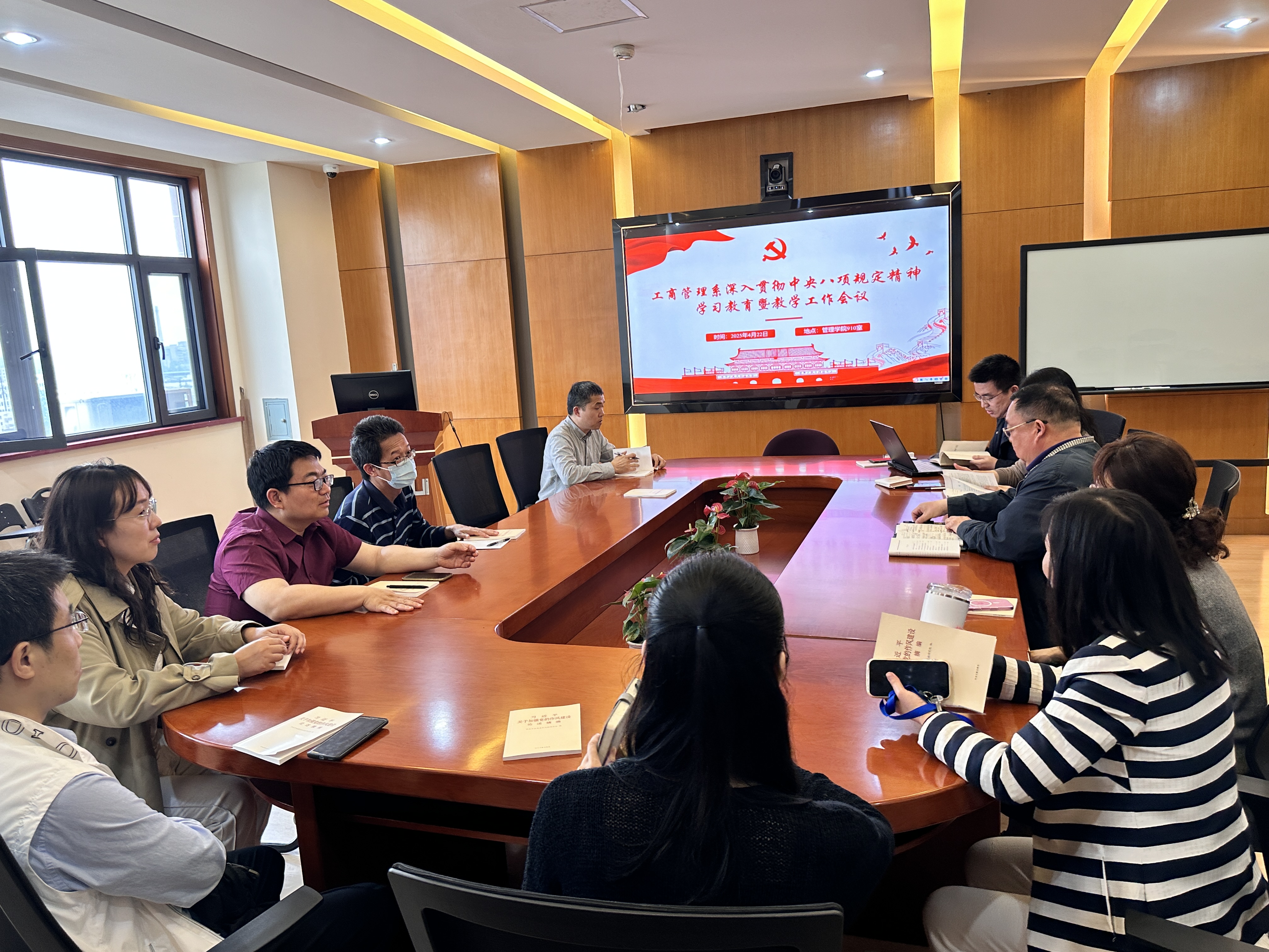 4月22日下午,工商管理系党支部在910会议室举行深入贯彻中央八项规定精神学习教育专题学习会,系主任葛玉辉、副系主任周洋、副系主任张凯、系党支部书记陈鑫以及工商系全体教师参加了会议。本次会议由陈鑫主持。