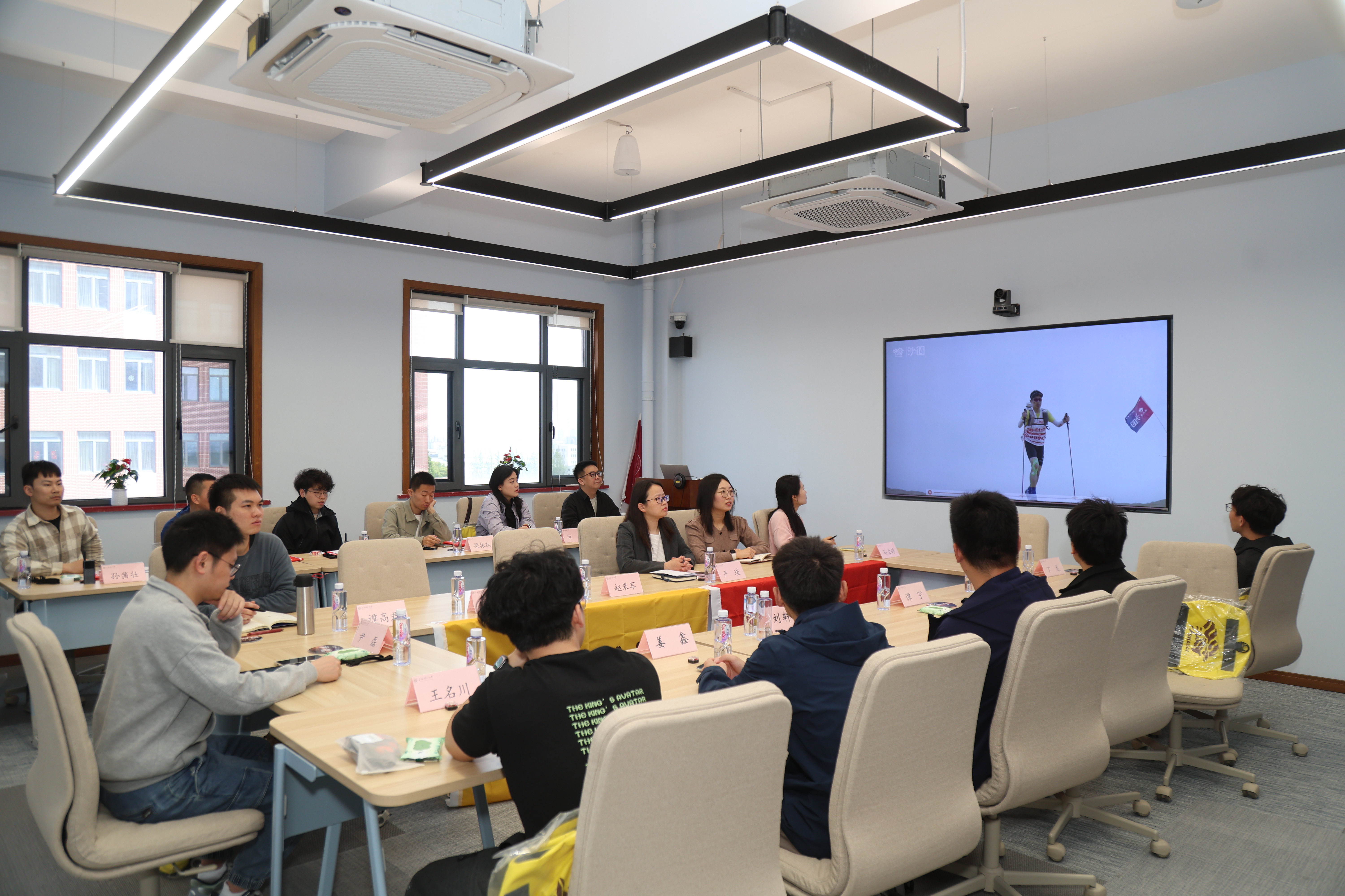 大家集中观看了沙14全流程动画。通过短片对即将到来的沙14各个节点有了更清晰的认知。随后,沙14B队代表汤宗鑫及沙14领队尹磊分别做表态发言,他们表示作为初飞的沙鸥,在沙漠里,真正的胜利不是超越对手,而是所有队友一个都不少地抵达终点。他们再次明确,本次出征的目标就是沙鸥初飞,期待在腾格里的上空,飘扬起上理的旗帜。