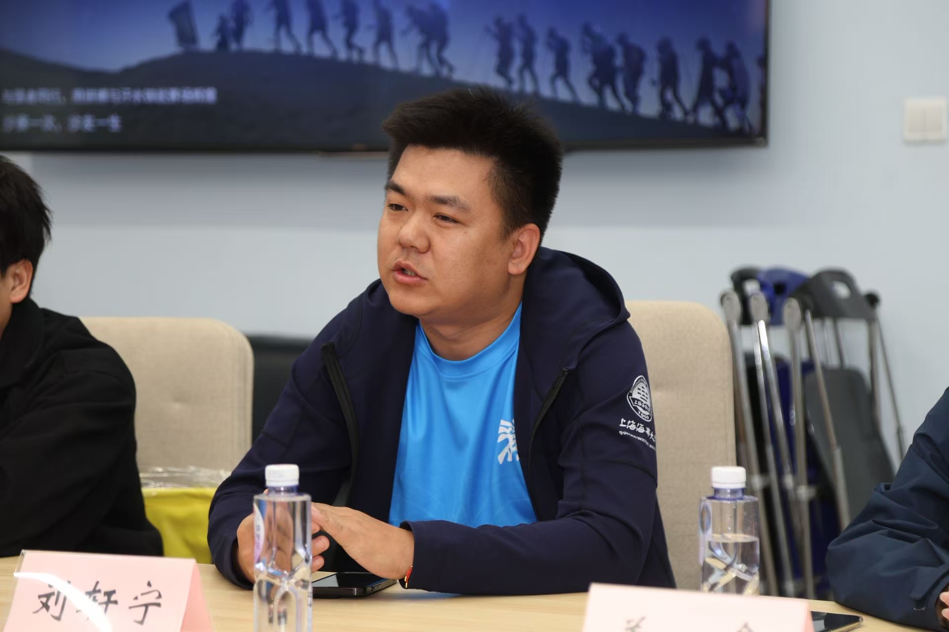 上海海事大学MBA联合会主席刘轩宁分享了他过往沙赛的经历,从沙赛的接站到酒店的行李转运,到营地的生活细节等,耐心地解答了理行战队队员们问题。