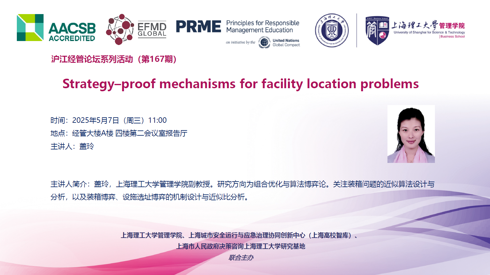 沪江经管论坛系列活动(第167期):Strategy–proof mechanisms for facility location problems