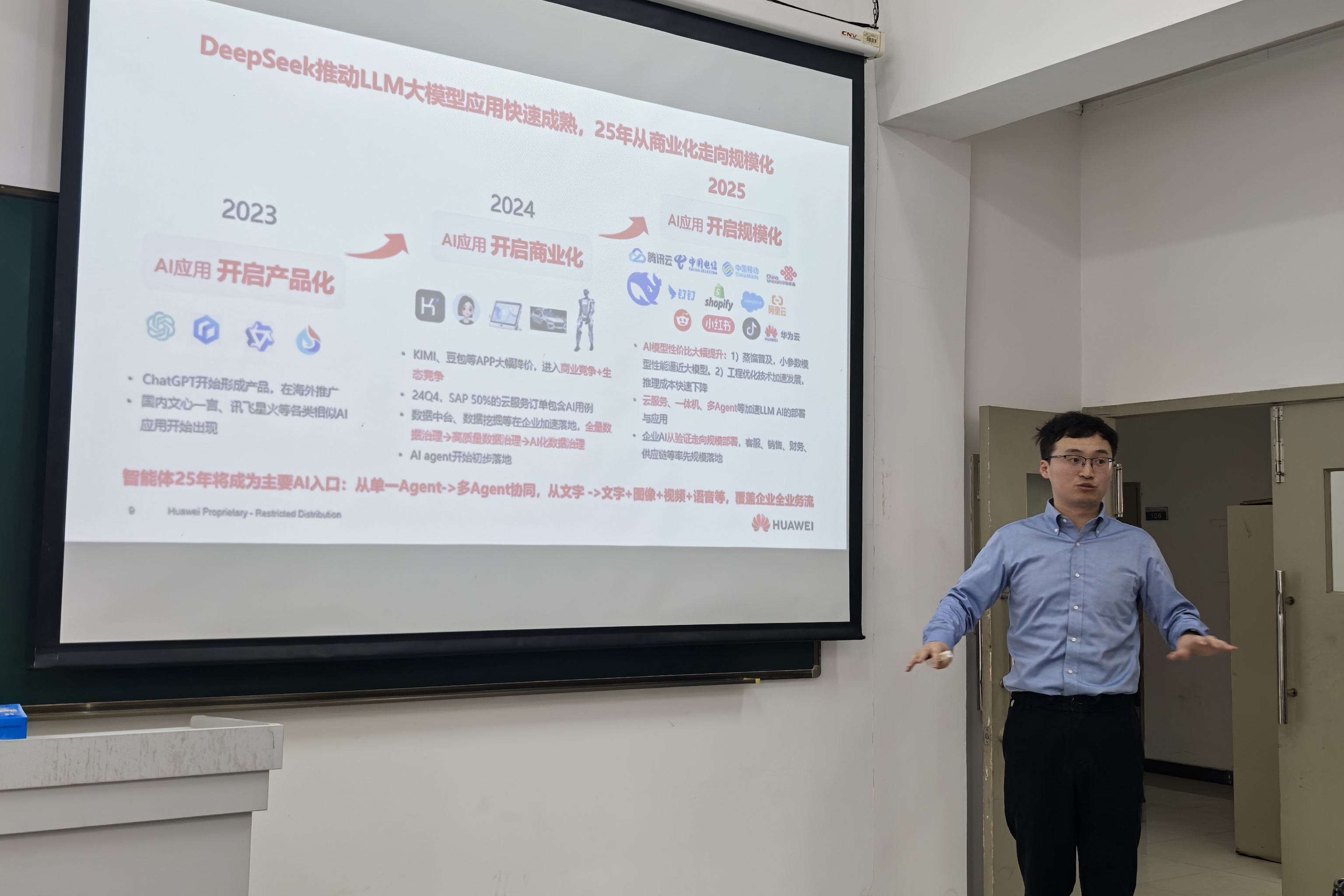 本次宣讲会特别邀请了华为人工智能专家徐帅,为新生们带来了一场精彩纷呈的行业案例分享盛宴。徐帅从人工智能领域的战略布局、核心技术研发、行业应用实践等方面进行了深入解读。徐帅的分享让新生们深刻感受到了人工智能技术的魅力和行业发展的巨大潜力,也激发了他们对未来职业的向往和追求。