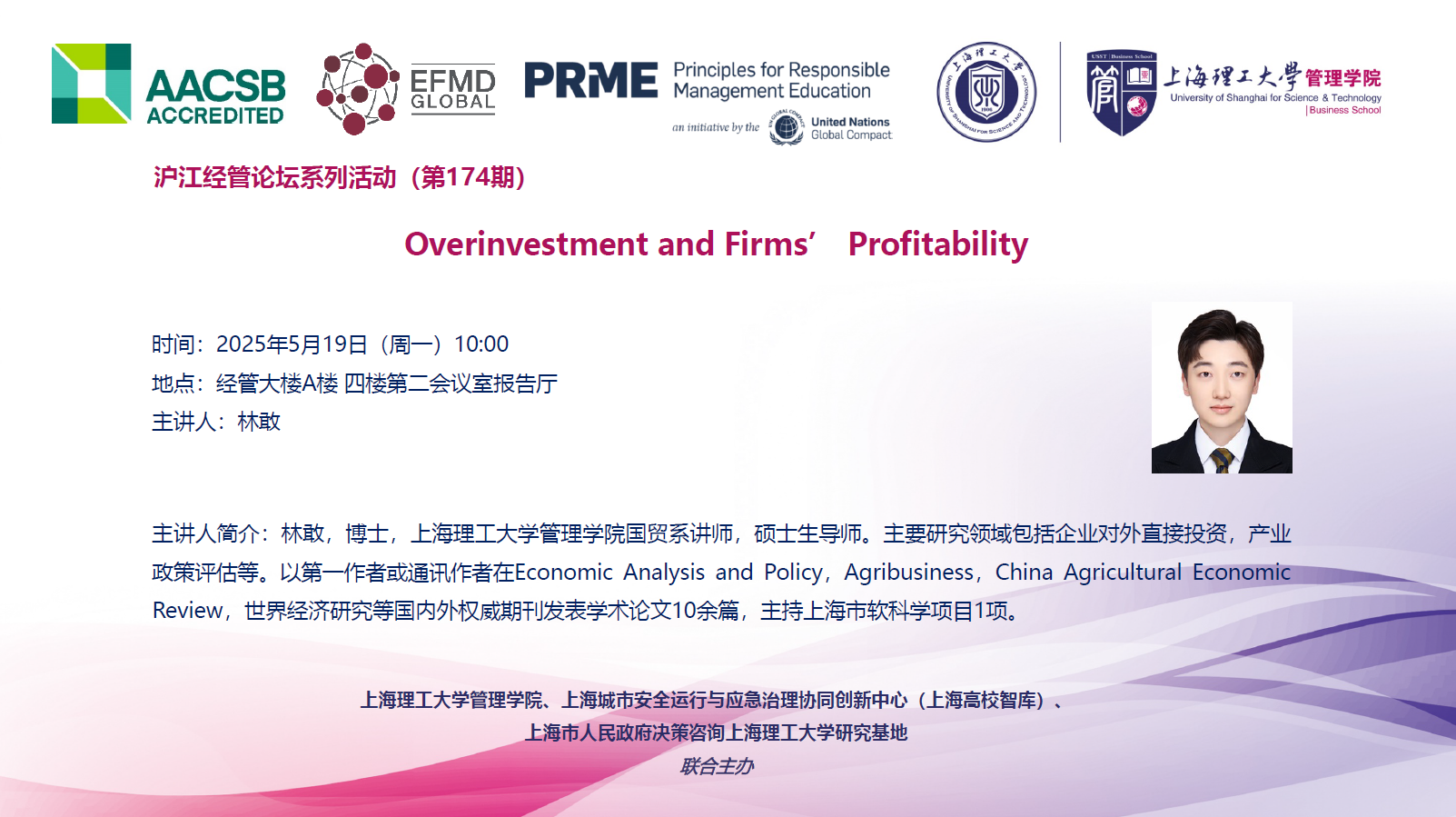 沪江经管论坛系列活动(第174期):Overinvestment and Firms’ Profitability