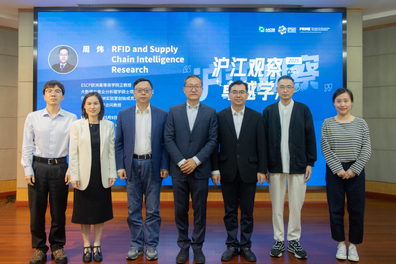 5月9日,“沪江观察”管理实务类课程在军工路校区举办。ESCP欧洲高等商学院正教授、ESCP欧洲高等商学院大数据与商业分析理学硕士项目创始主任、上海理工大学管理学院客座教授周炜,带来题为“射频识别技术与供应链智能研究”(RFID and Supply Chain Intelligence Research)的主题分享。管理学院院长、专业学位教育中心主任赵来军主持讲座,副院长刘魏巍、中心综合办公室主任孟陈莉、管理学院相关师生参加讲座。