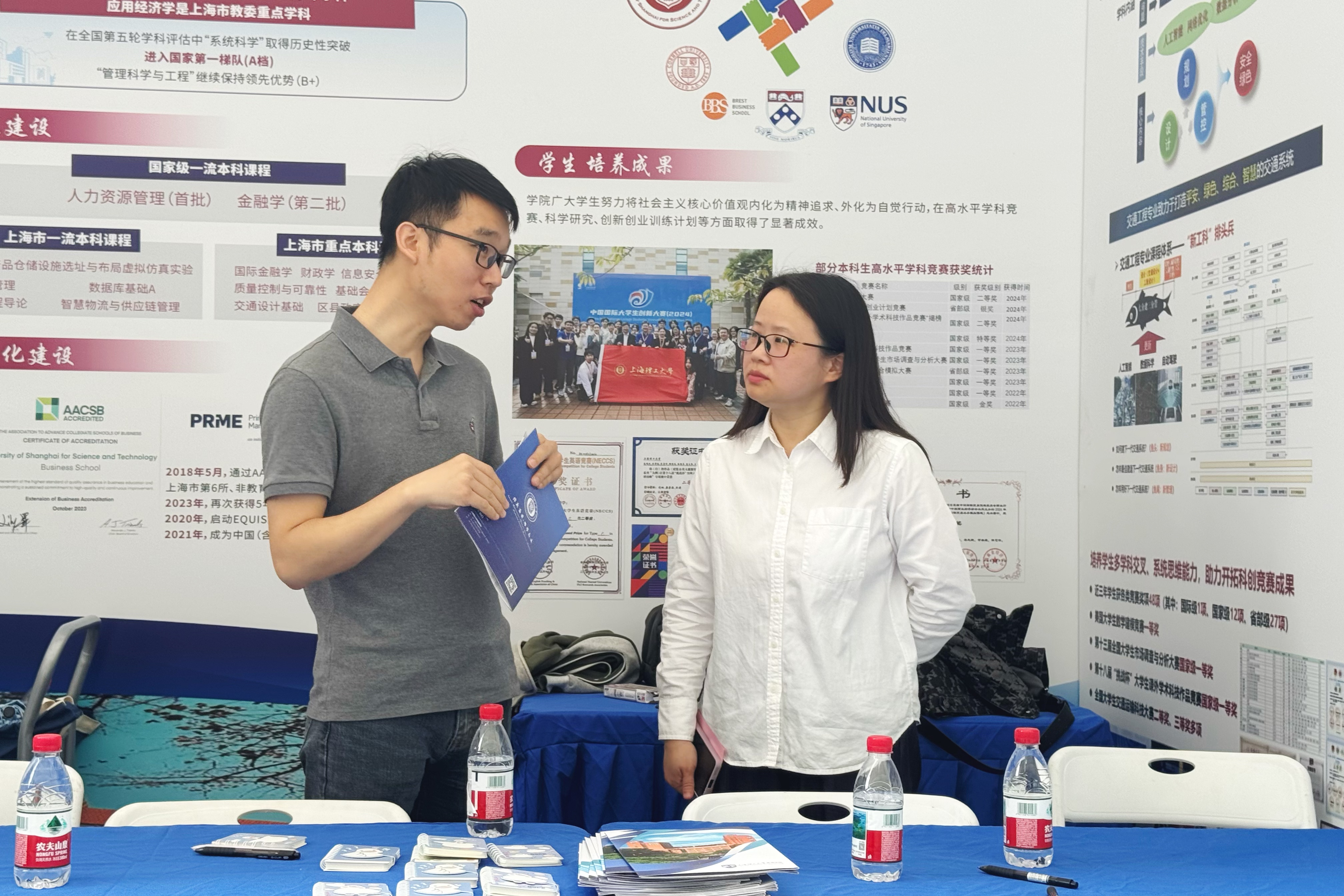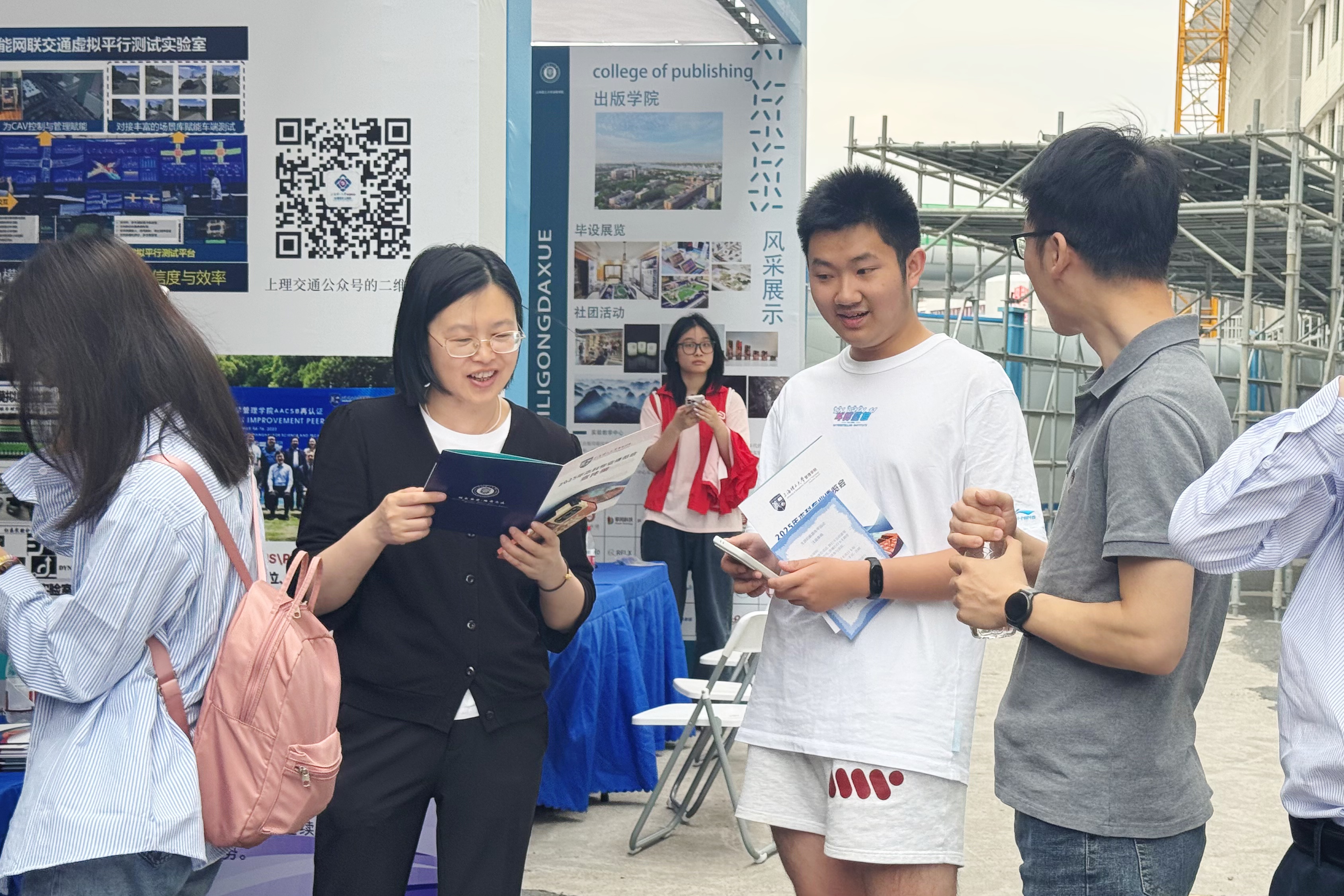 展会现场,学院本科教务办公室贴心准备了专业介绍手册供同学们取用,同学们在现场拿着资料查看,并找到“志同道合”的小伙伴进行交流讨论,碰撞思维火花。