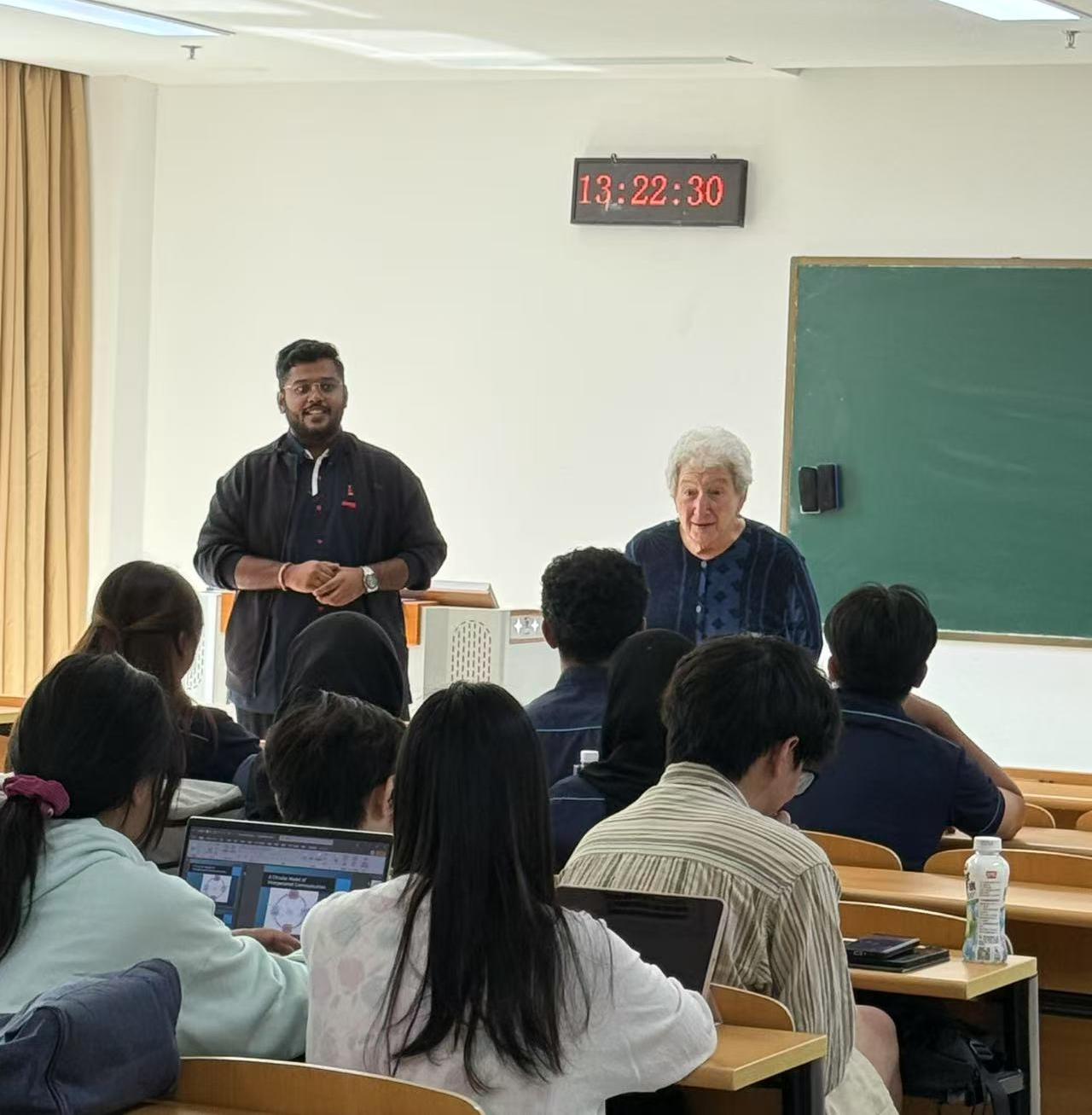 在学院课程安排下,来访学生参与了由外籍教师Jennifer B Tarlin主讲的《领导力与团队管理》课程。课堂中,Jennifer通过案例分析与小组互动,引导学生探讨跨文化领导与高效团队协作。来访学生积极参与,与学院学生进行了深入交流,展现出良好的沟通能力与学习热情,课堂氛围融洽、互动频繁。