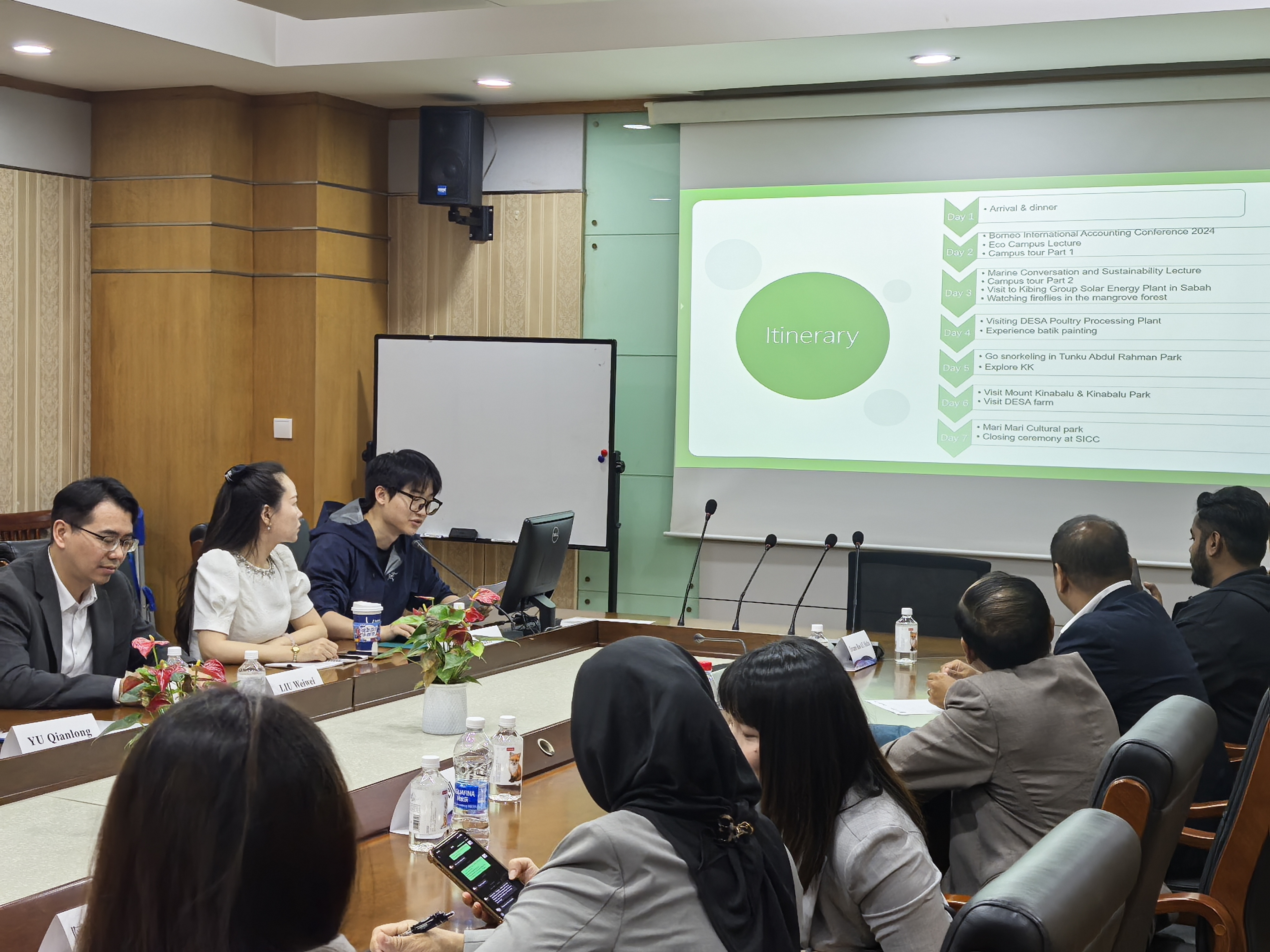5月13日至14日,马来西亚沙巴大学商业、经济与会计学院院长Mohd Rahimie Abd Karim、国际交流协调员Datu Razali Datu Eranza、旅游管理专业教师 Tay Kai Xin、行政主管Awina Kamis及6位学生代表来访管理学院,学院精心组织开展了为期两天的文化体验与学术交流活动。
