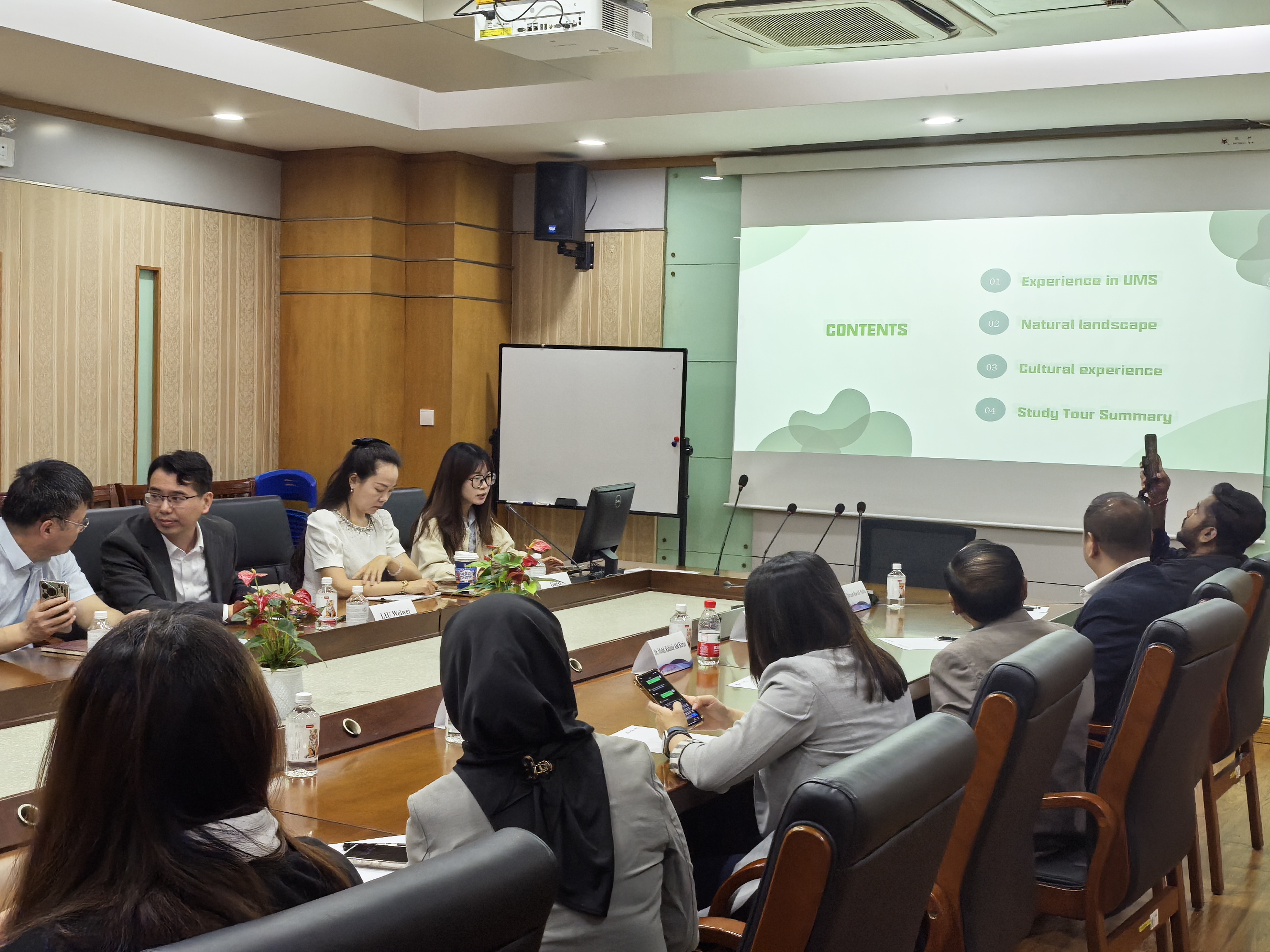 学院学生代表董宏霖、吴亚楠分享了此前在沙巴大学的游学经历,从丰富多彩的游学活动、优美宜人的沙巴大学校园环境,到个人在知识与视野上的收获等多个方面讲述了自己的亲身经历,引起了在场师生的强烈共鸣。他们的分享让来访师生感受到合作项目的成果,也进一步激发了双方青年对跨文化交流的兴趣与期待。