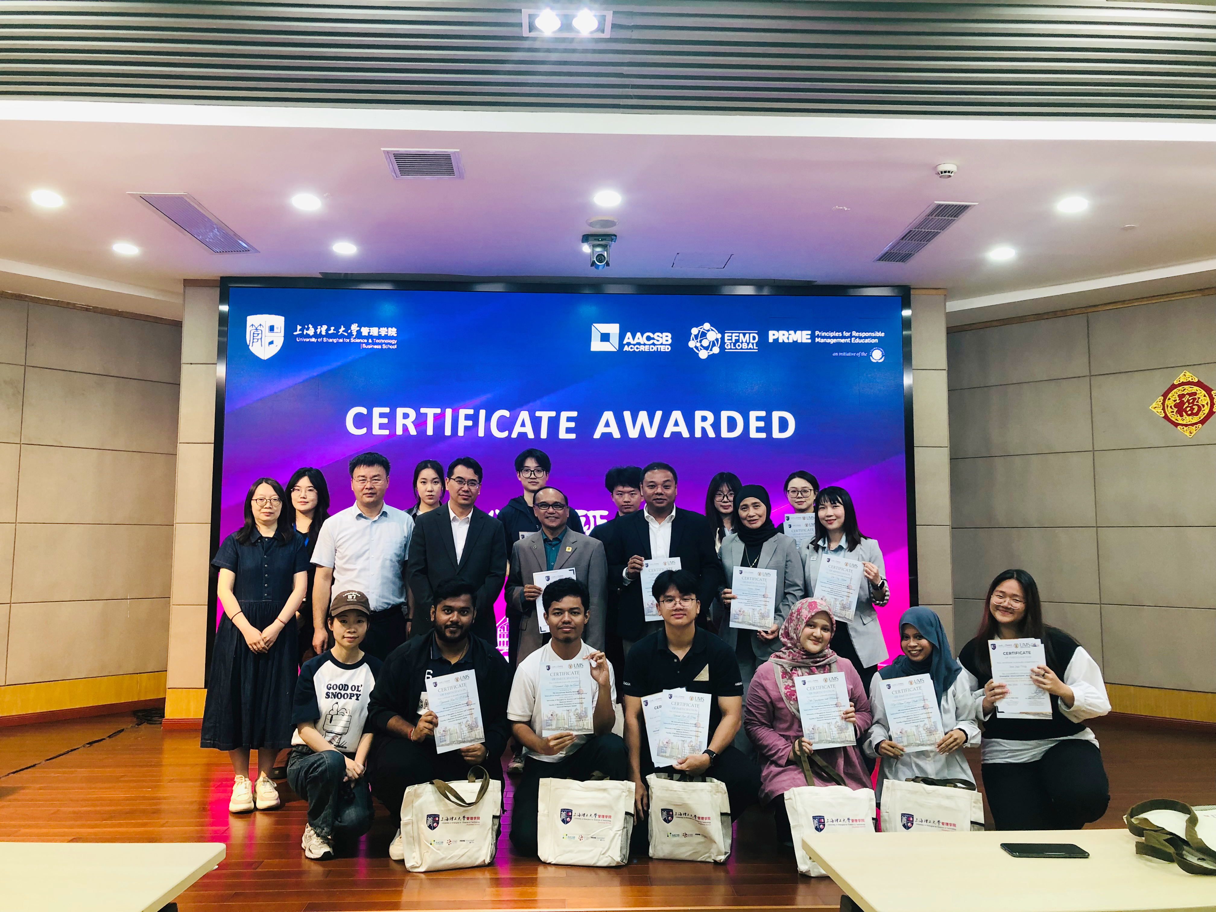 交流分享会后,管理学院副院长刘魏巍与会计系主任、MPAcc项目副主任于谦龙为代表团及参与此次交流活动的学院学生志愿者颁发了证书。双方一致表示,将以此次交流为契机,推动更多层次、更广领域的国际合作。